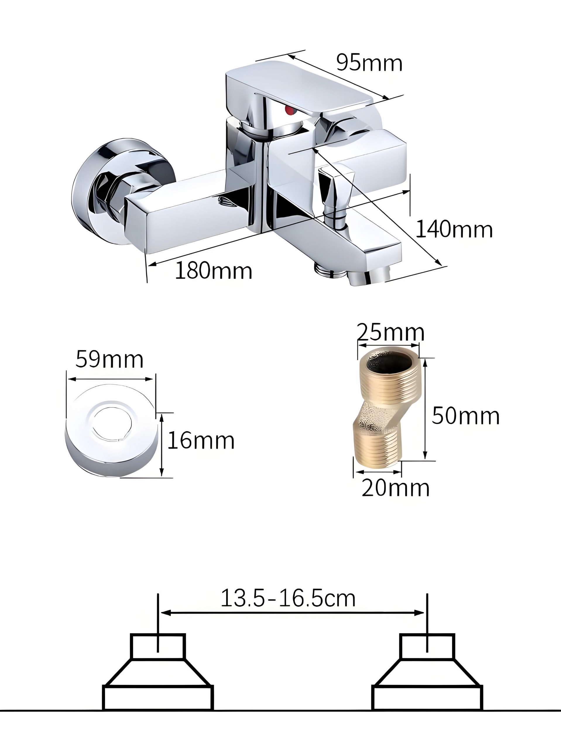Набір: настінний змішувач для ванни + шланг + слухавка + тримач для трубки