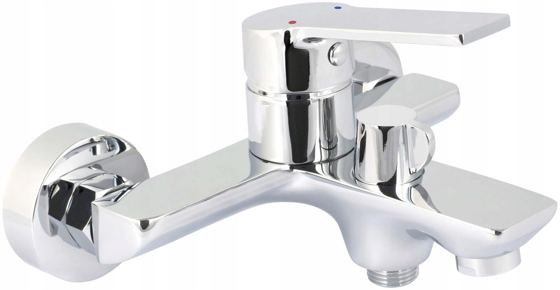 Змішувач ідеально підходить як для класичних, так і для сучасних ванних кімнат. Корпус змішувача виготовлений з міцної латуні, що забезпечує його довговічність і стійкість до корозії. Поверхня оброблена блискучим хромом, який чудово відбиває світло. Змішувач має механічний керамічний перемикач функцій, що дозволяє зручно змінювати струмінь води між душовою лійкою та виливом.
