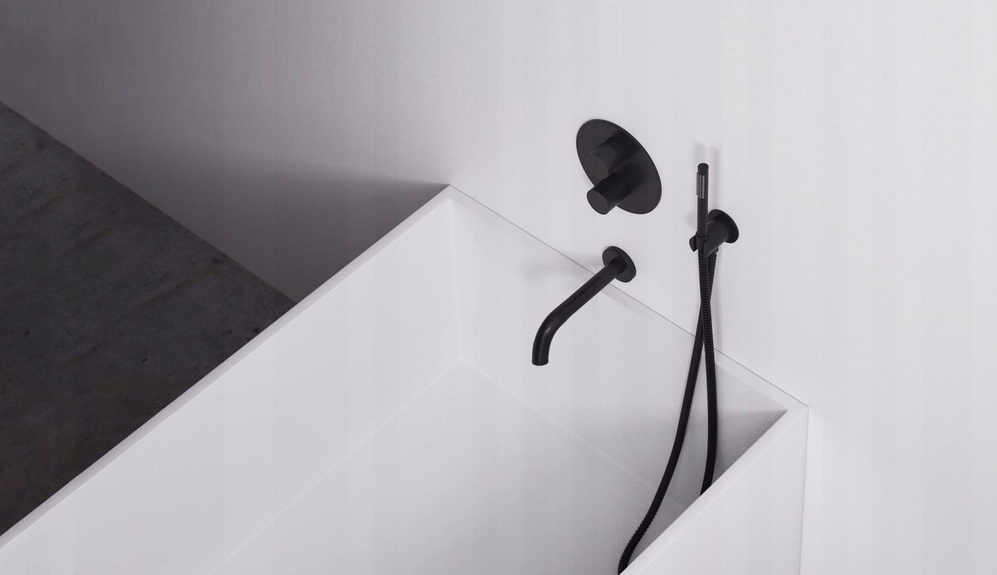 Представляємо вам нову модель змішувача для ванни прихованого монтажу серії Lungo. Завдяки своїй універсальності та дивовижним естетичним цінностям набір є відмінним вибором для власників будь-якої ванної кімнати. Модна форма вищештукатурних елементів була покрита лазером 4-шаровим покриттям найвищої якості в матовому чорному кольорі. Завдяки цій технології акумулятор захищено від корозії, потемніння та зміни кольору.