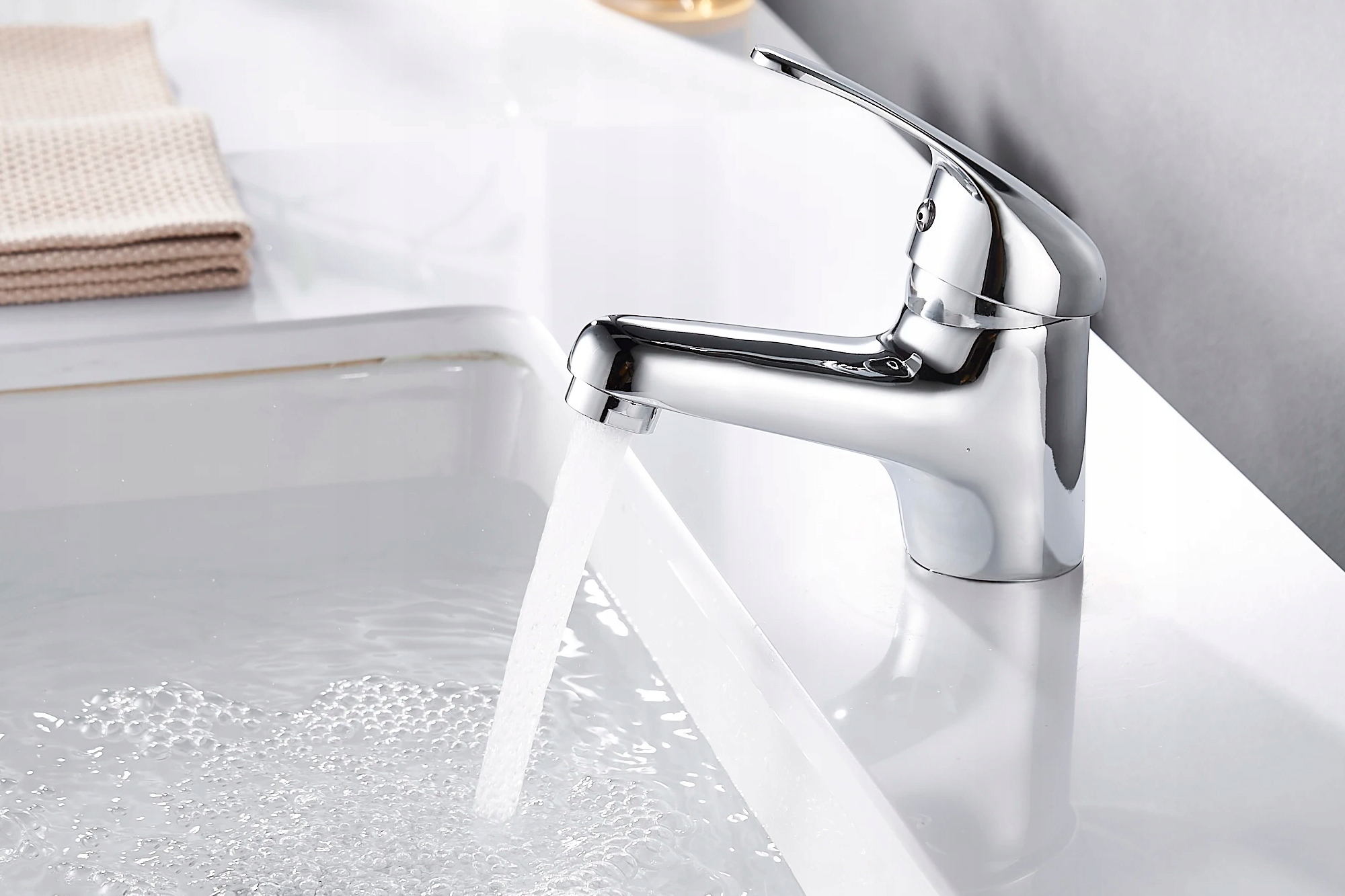 BATERIA ŁAZIENKOWA UMYWALKOWA KRAN DO UMYWALKI NISKA CHROM STOJĄCA MAŁA