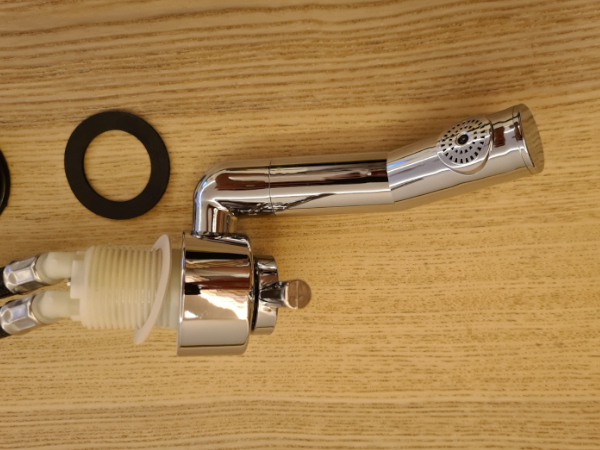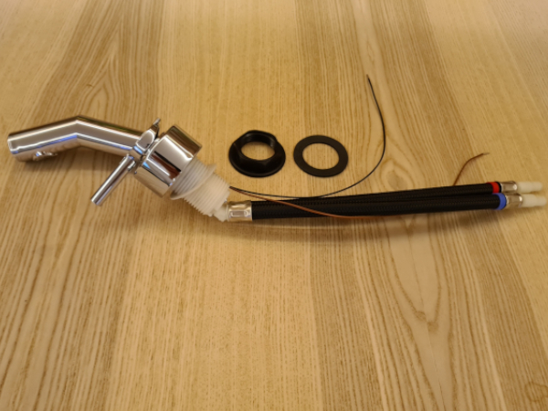 Носик виготовлений із пластику. Ідеально підходить для використання в каравані або кемпері. Кран має два патрубки для гарячої та холодної води. Кран має вигнутий носик!
