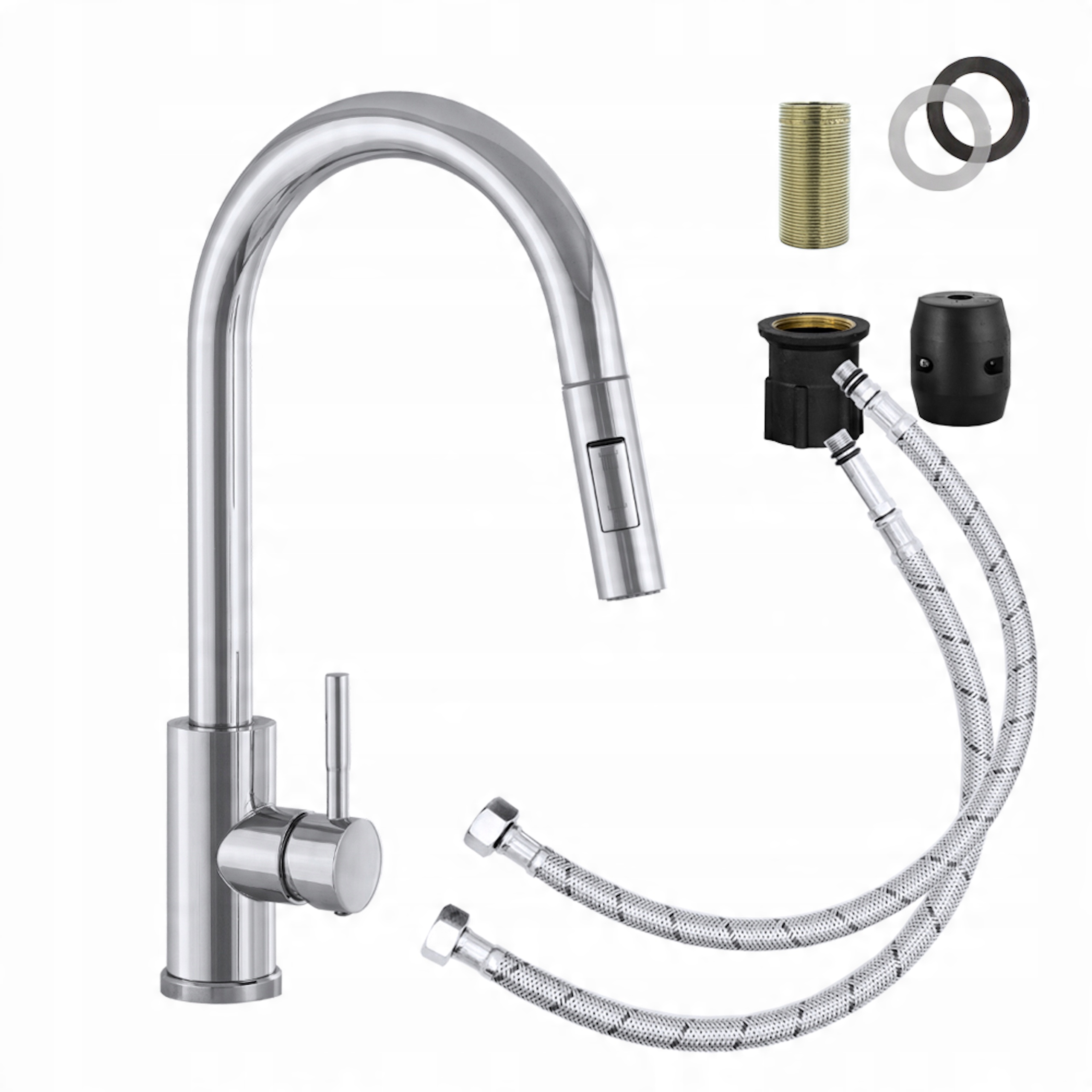 Кухонний змішувач з висувним виливом, хром, двофункціональний змішувач, срібло тару