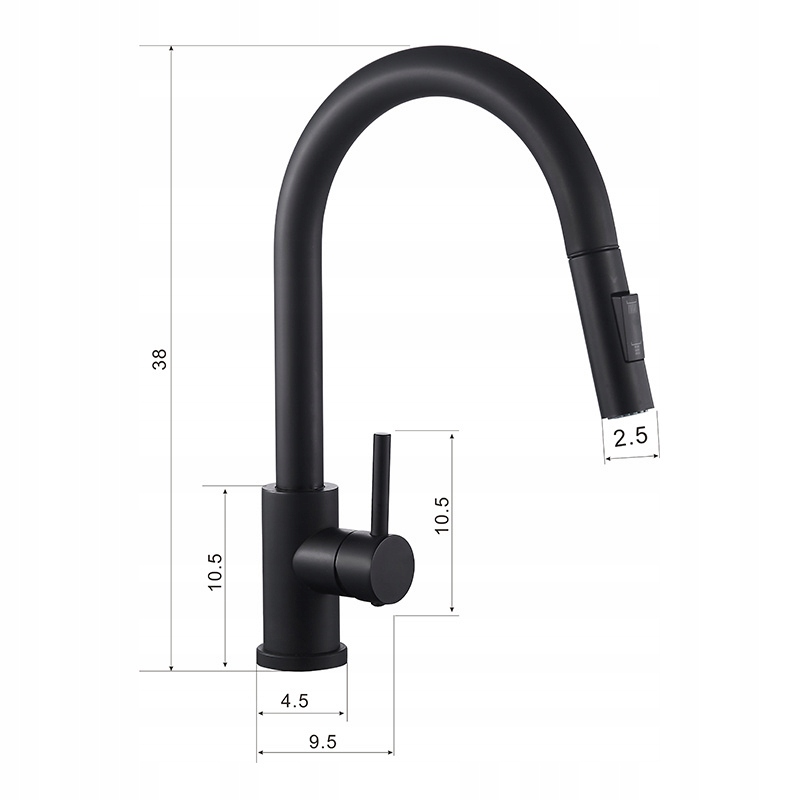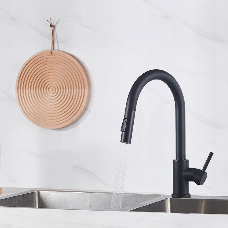 Змішувач кантрі -кухні Soto витягнута чорна носорна основа чорна основа
