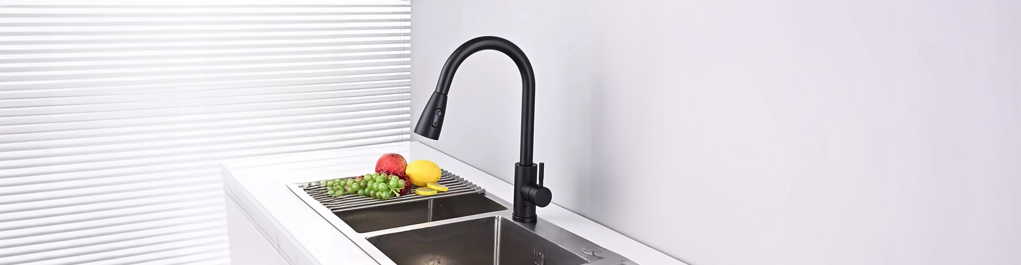 ЧОРНИЙ КУХОННИЙ змішувач З ВИСУЙНИМ ВИЛИВОМ BLACK MAT