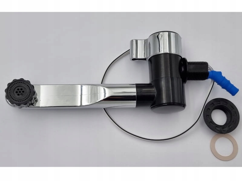 Вилив від відомої компанії Comet, модель Лондон. Вилив призначений тільки для холодної води. Перемикач, встановлений в ручці крана, замикає ланцюг 12 В і запускає водяний насос. Вилив рухомий, може бути встановлений вертикально або горизонтально. Вилив London відмінно працює в поєднанні з занурювальним насосом. Не підходить для використання з напірним насосом!