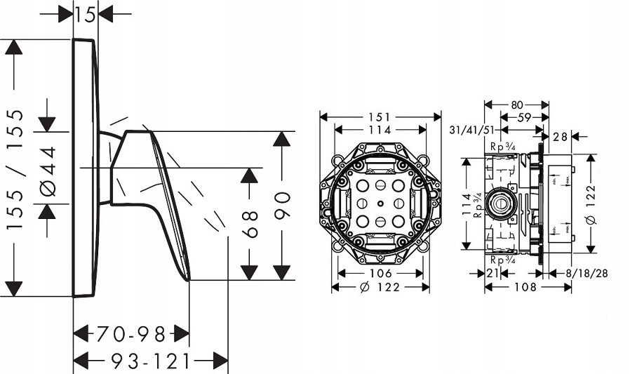 Набір слід встановити на універсальний настінний модуль Hansgrohe iBox 01800180 (продається окремо)!