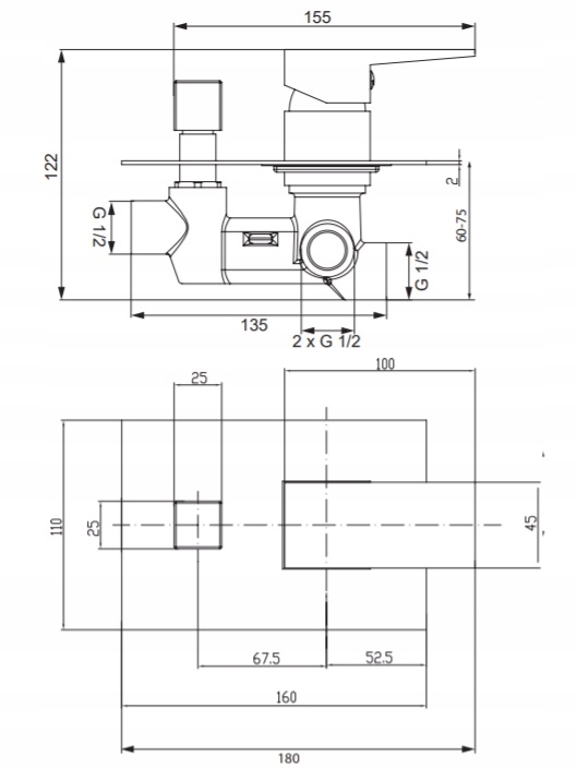 Два виходи змішаної води та два входи : для гарячої та холодної води
