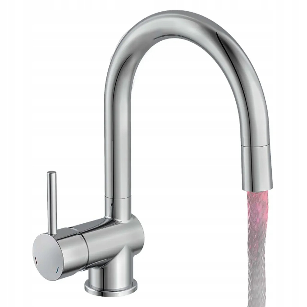Ви не можете пропустити цей змішувач STELLA та LED від SCHÜTTE! Акумулятор з металу гарантує тривалий термін служби. Крім того, він пропонує універсальну конструкцію з металевого з’єднувального шланга, вилив, що обертається на 360°, металеву ручку, керамічні диски, змінну і тиху вставку діаметром 40 мм. Змішувач має функцію Eco-Click, яка економить до 50% води, і регульований замок для захисту від дітей. Цей змішувач, оснащений змінним світлодіодним ковпачком, світиться різними кольорами: синім, зеленим і червоним, у 3 температурних діапазонах: синій нижче 30°C, зелений в діапазоні 31-42°C і червоний вище 42°C. Якщо ви шукаєте міцний змішувач для умивальників і раковин, цей змішувач стане ідеальним вибором.