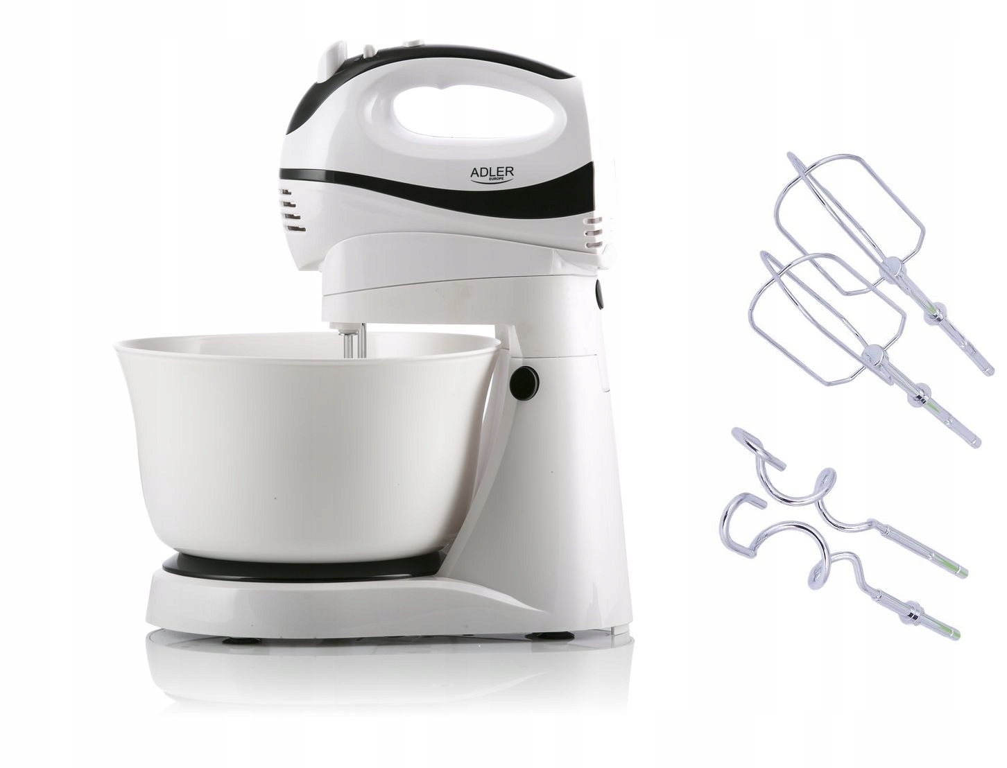 Зручний кухонний міксер потужністю 300 Вт. Незамінний для тих, хто випікає торти та печиво. Він дозволяє використовувати 5 різних швидкостей залежно від типу страви, що готується. Це робить його придатним для змішування борошна з іншими інгредієнтами та для збивання яєць. Ви також можете використовувати функцію Turbo, якщо це необхідно. Робот практичний і довговічний, тому його можна використовувати тривалий період часу без ризику виходу з ладу. Обертова чаша з приводом не вимагає від користувача тримати робота в руці, що робить робота більш зручним, ніж стандартні моделі.