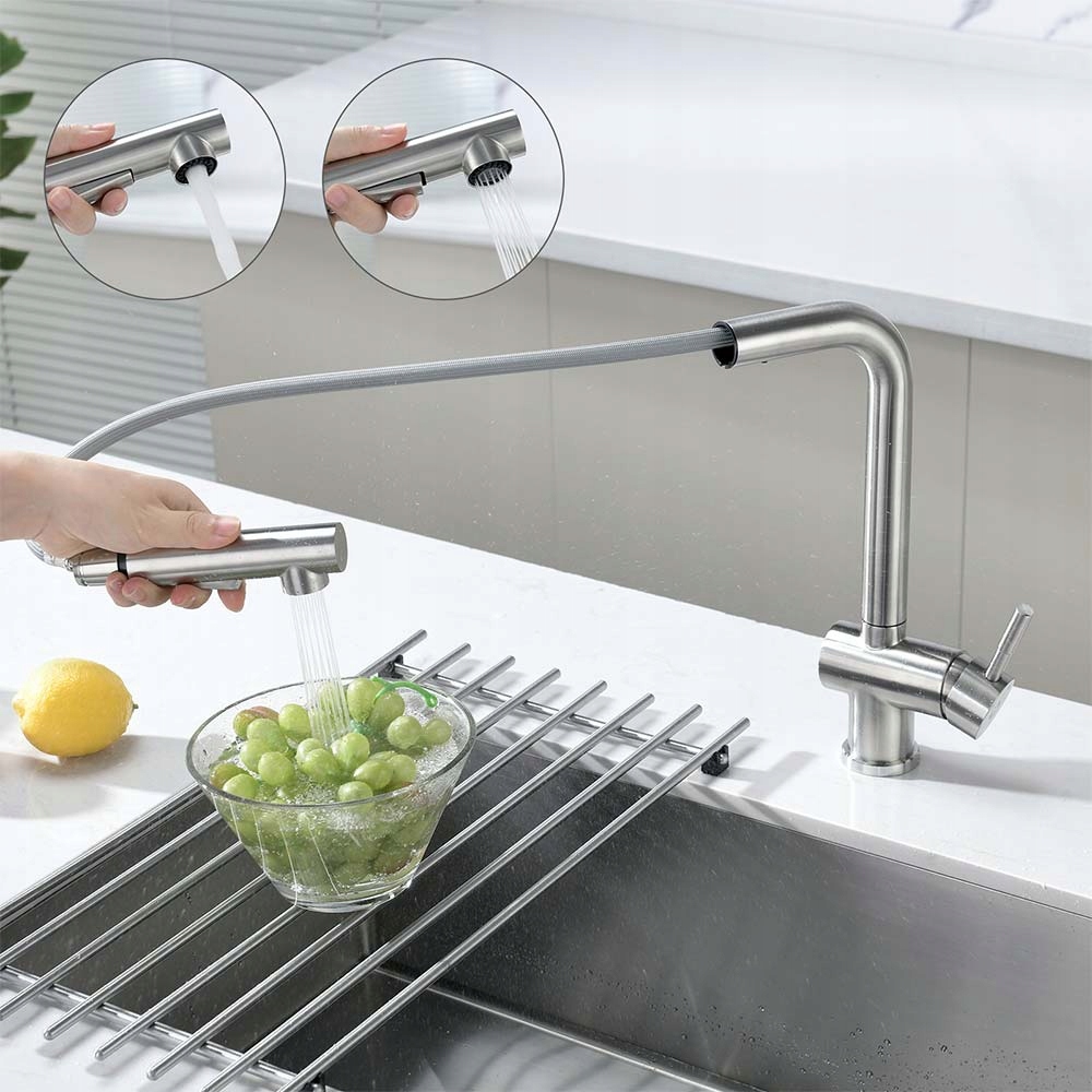 Змішувачі для кухні INOX Поворотний змішувач з висувним виливом 40см