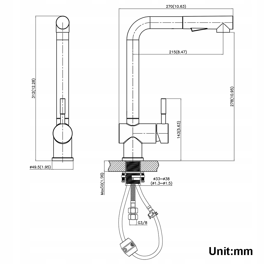 - підключення G3/8 шланги довжиною 600 мм в комплекті