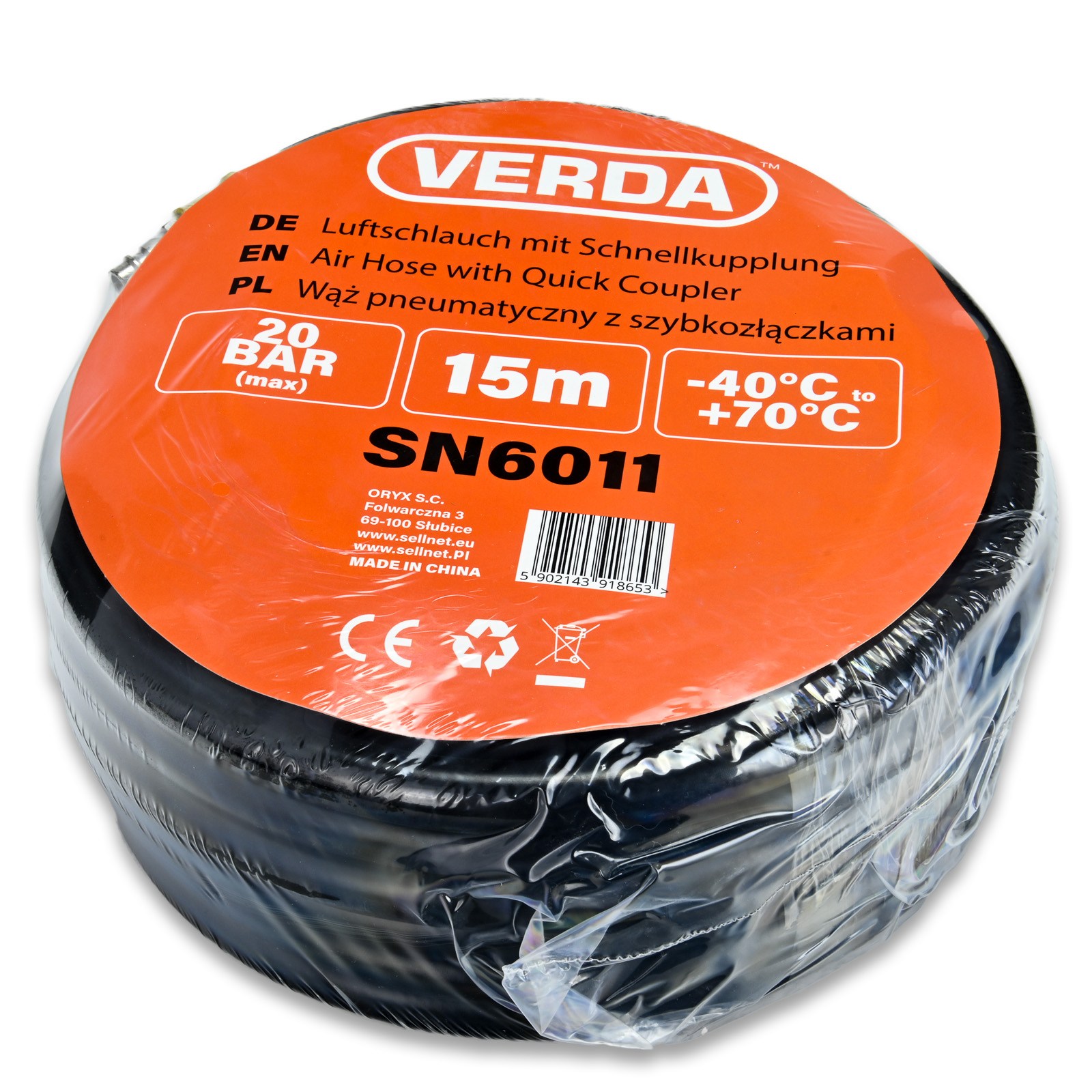 Професійний пневматичний шланг 10х17мм 15м з швидкими роз'ємом SN6011