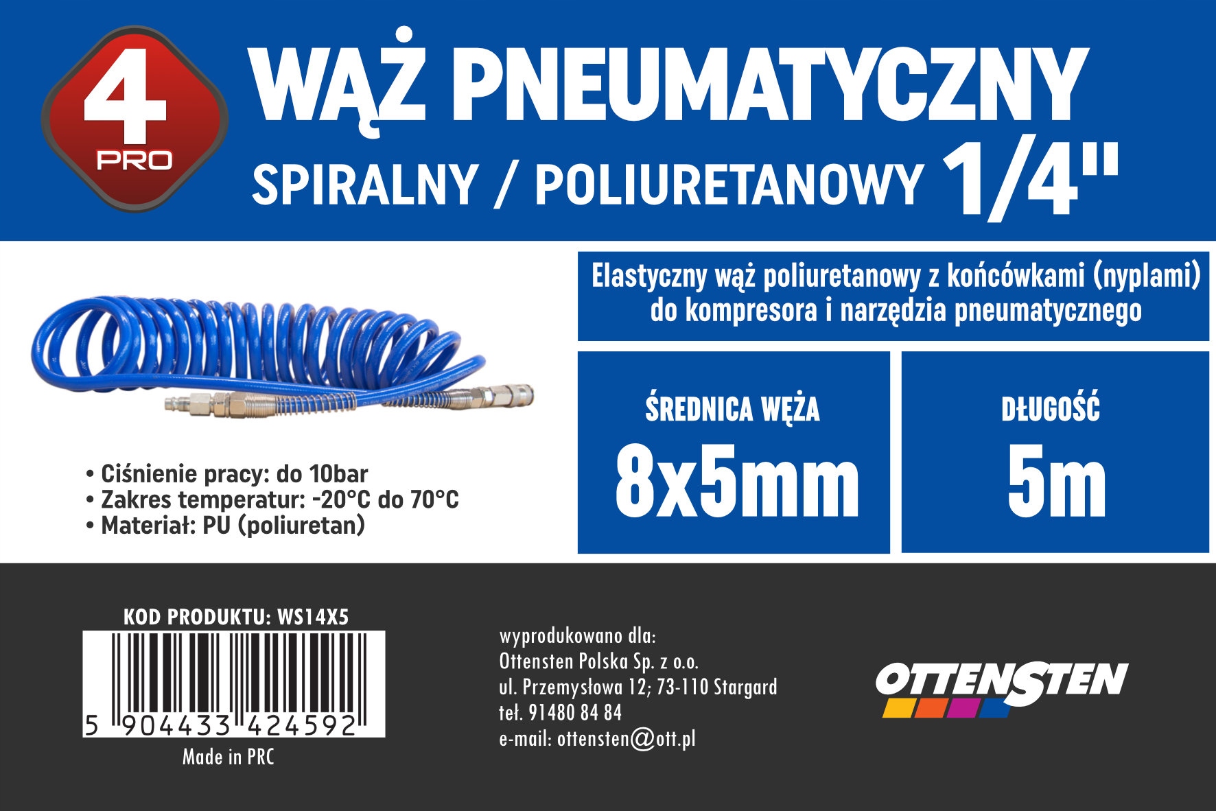 hose Інформація про роздруківку про технічні параметри: довжина; Діаметр роз'ємів; Робочий тиск. 4PRO Поліуретановий шланг містить усе, що потрібно для повного використання потенціалу пневматичних інструментів. Незалежно від типу роботи, яку ви виконуєте, наш пневматичний шланг буде вашим надійним супутником.