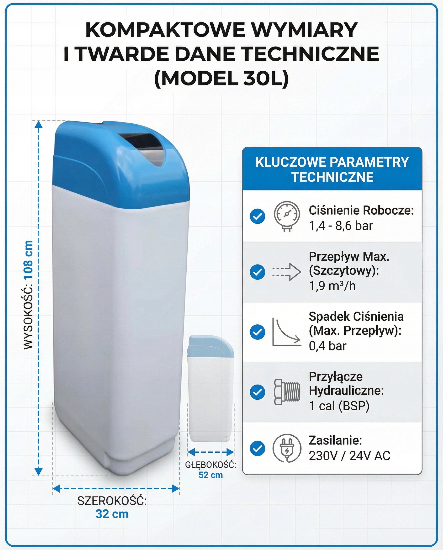 ✅ При проектуванні корпусу ми подбали про те, щоб пом'якшувач води на 30 л був максимально тонким, зручним у використанні та простим у встановленні навіть у маленькій котельні.