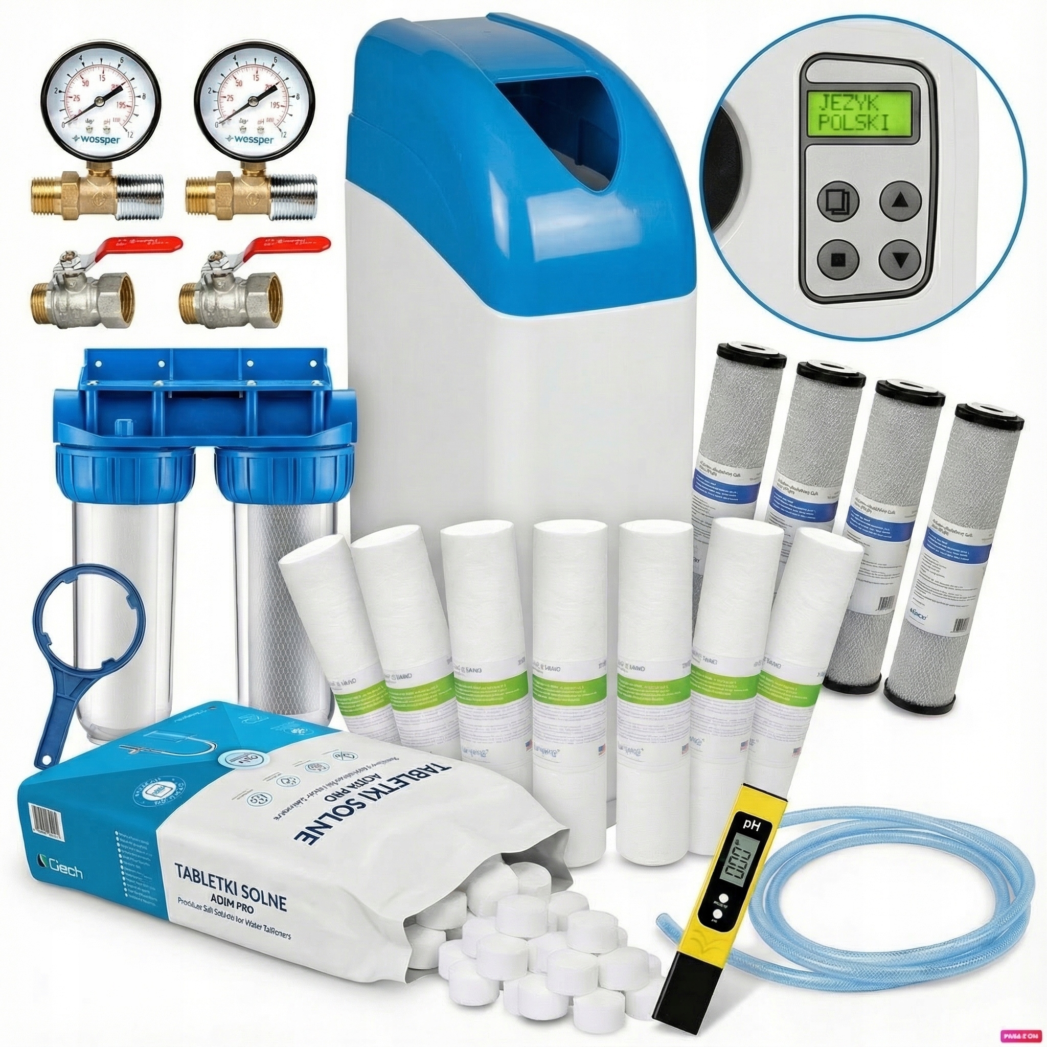 ✅ Повний набір преміум: пом'якшувач води 30 л + механічний фільтр + картриджі + сіль + твердомір.