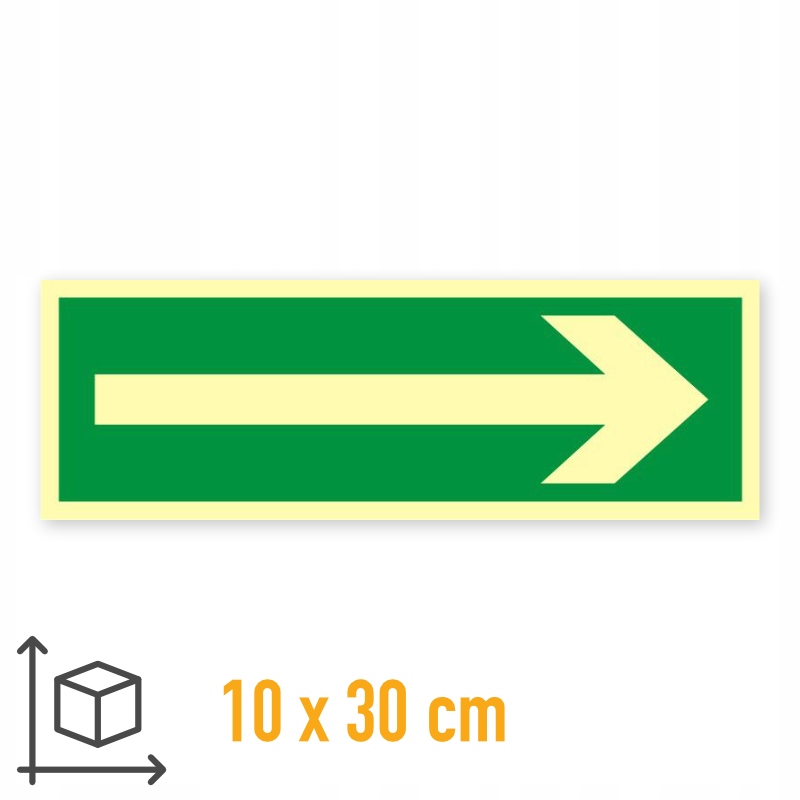 Знак евакуаційна стрілка, табличка 10 х 30 см, дошка ПВХ 1 мм, світиться