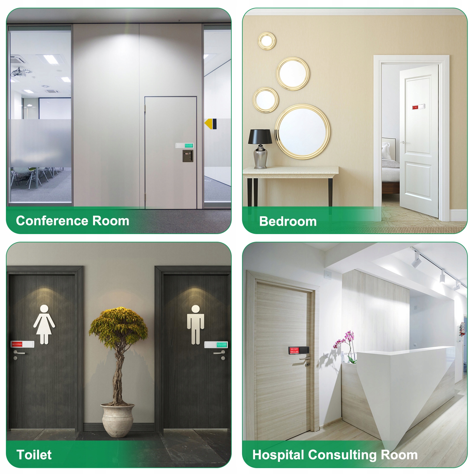 Дверна вивіска має широке застосування, як-от офіс, кімната засідань торгового центру, туалет, комітет, гуртожиток тощо.