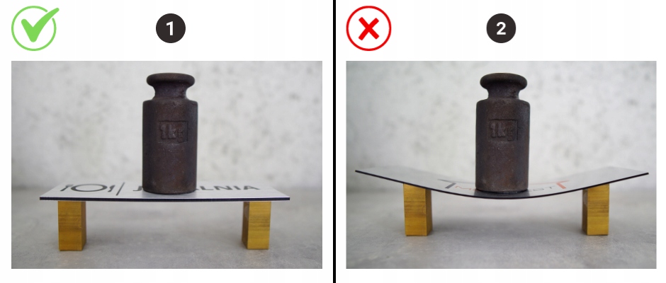 (дошки з dibond і ламінату були завантажені вага 1 кг для порівняння)