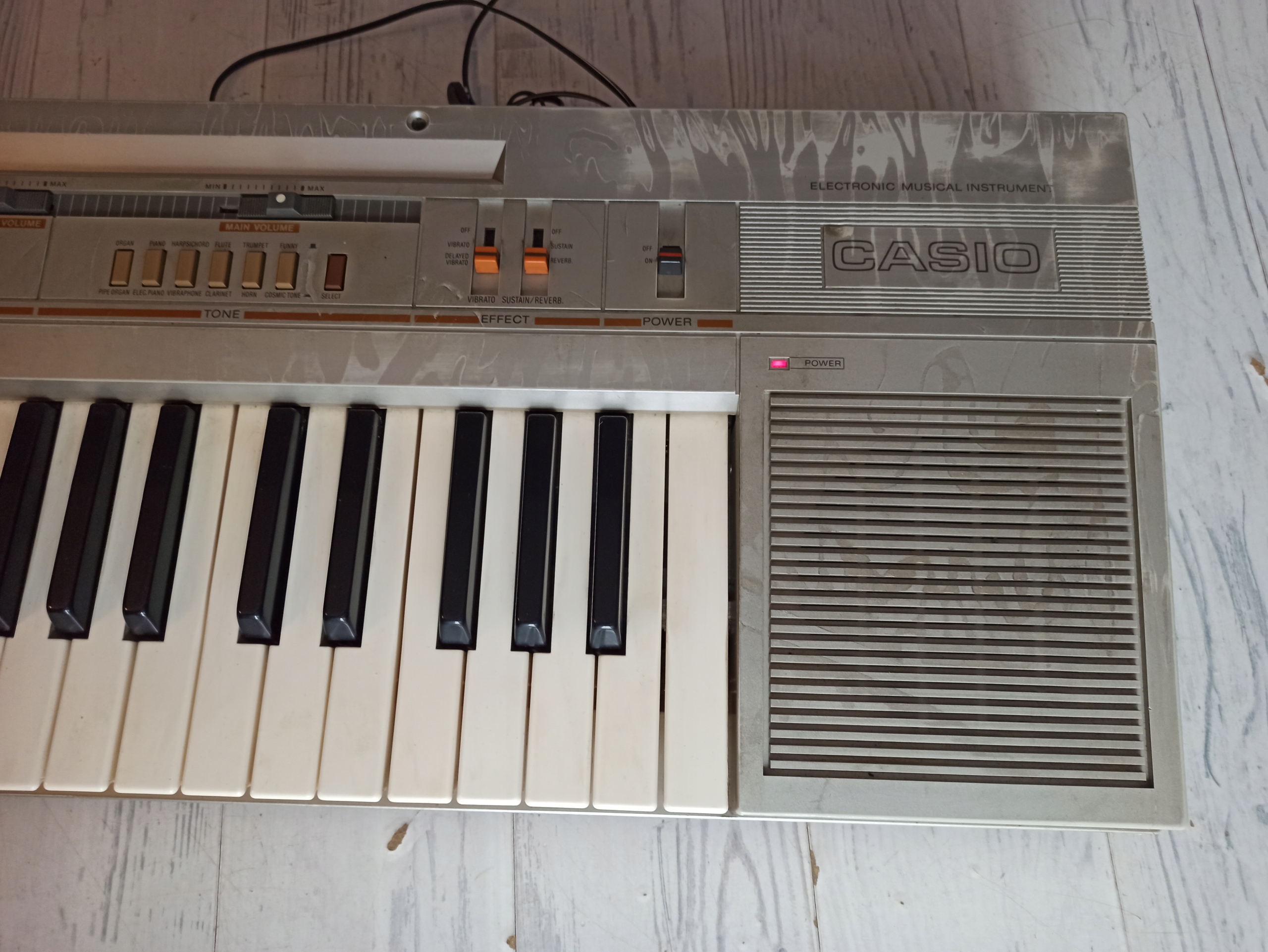 Кайборд у дуже хорошому технічному стані, ефективно, все працює дуже добре у чудовому стані. Є сліди оригінальної обкладинки Casio, ви можете побачити на малюнках. Ключ не використовується тривалий час, отже, кришка трохи чіпляється до корпусу. Відсутність джерела живлення відповідає стандартному вилку мінус посередині.