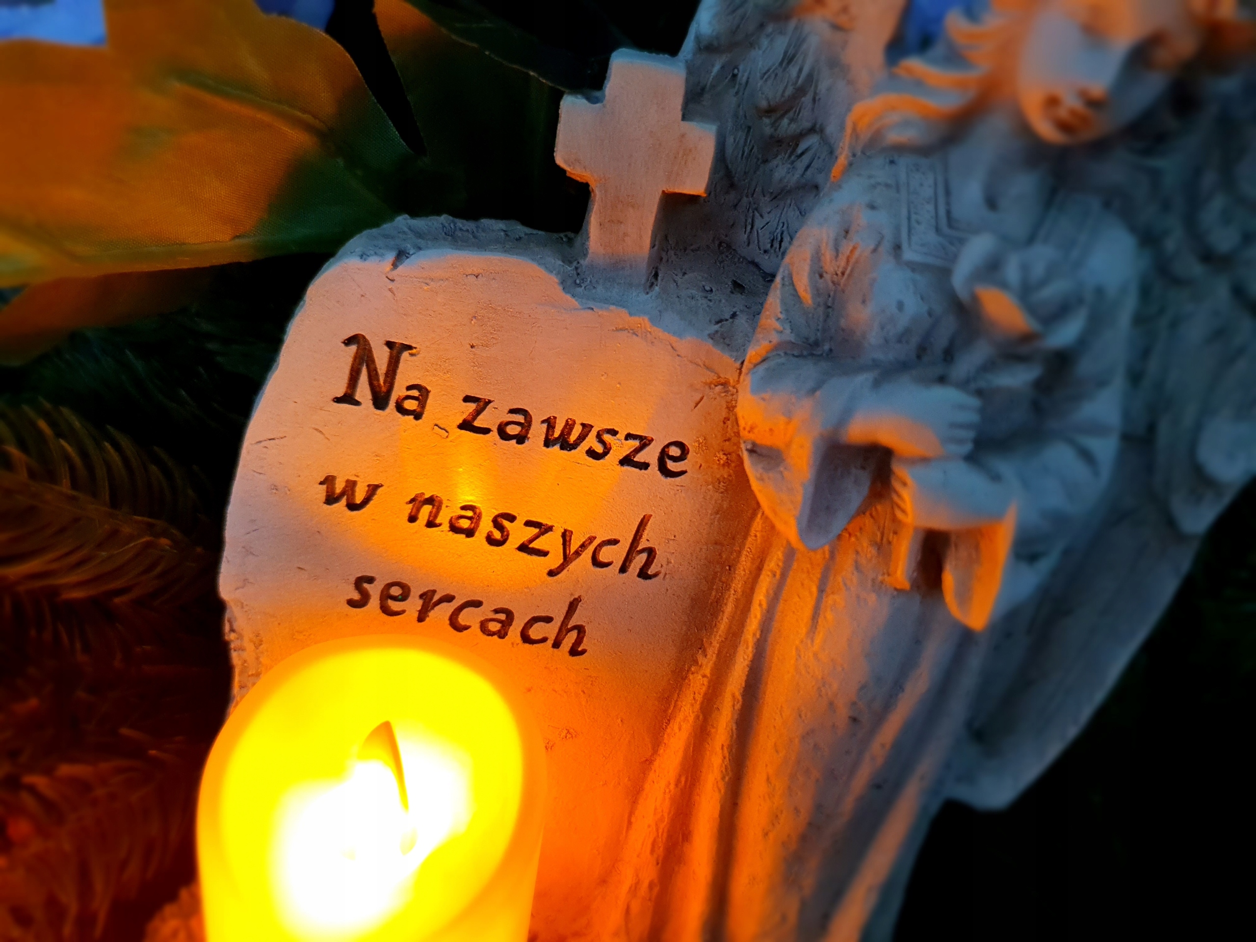 ZNICZ ANIOŁ NA GRÓB Z NAPISEM LAMPION LED 24 CM