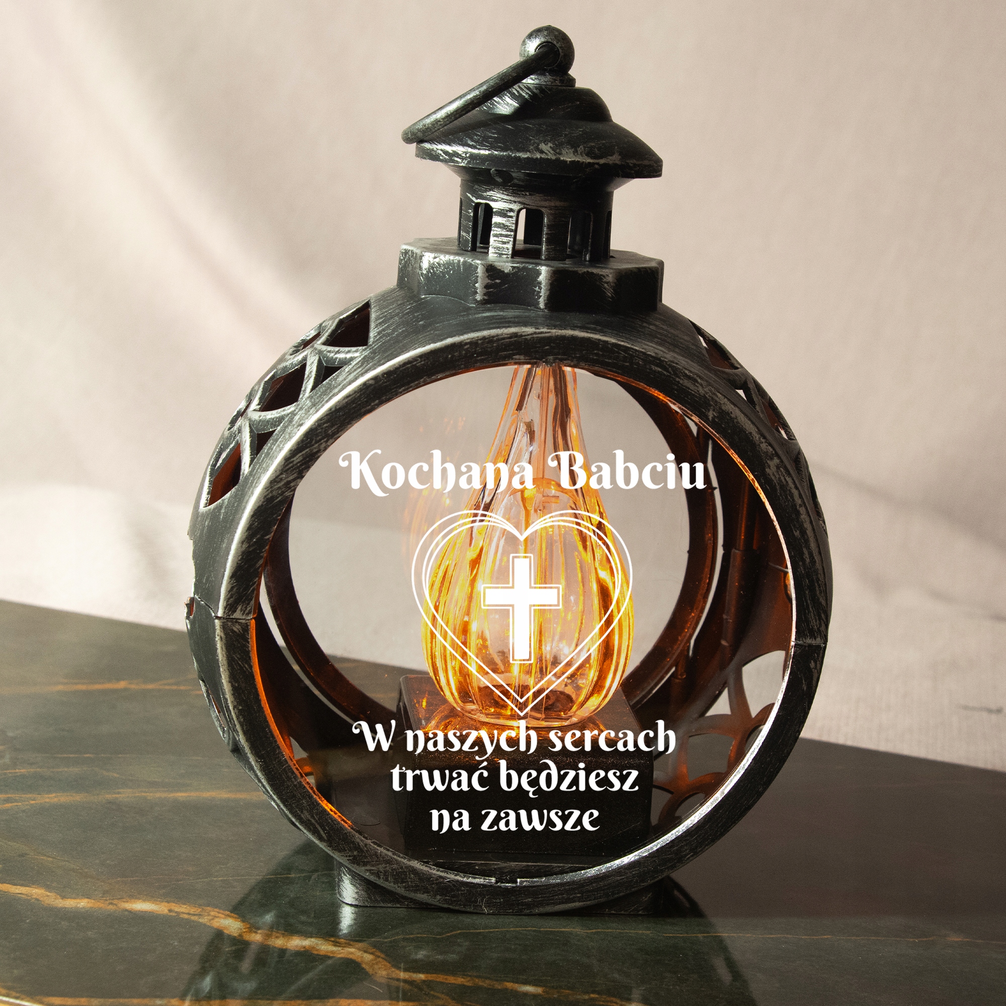 Вічні ліхтарі свічок для могили для бабусі срібла з полум'ям та гравюром