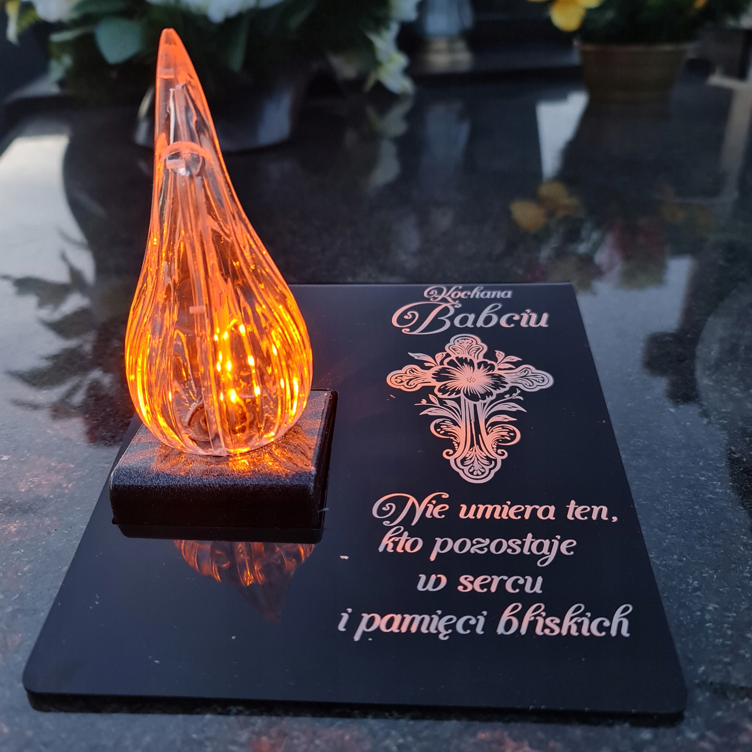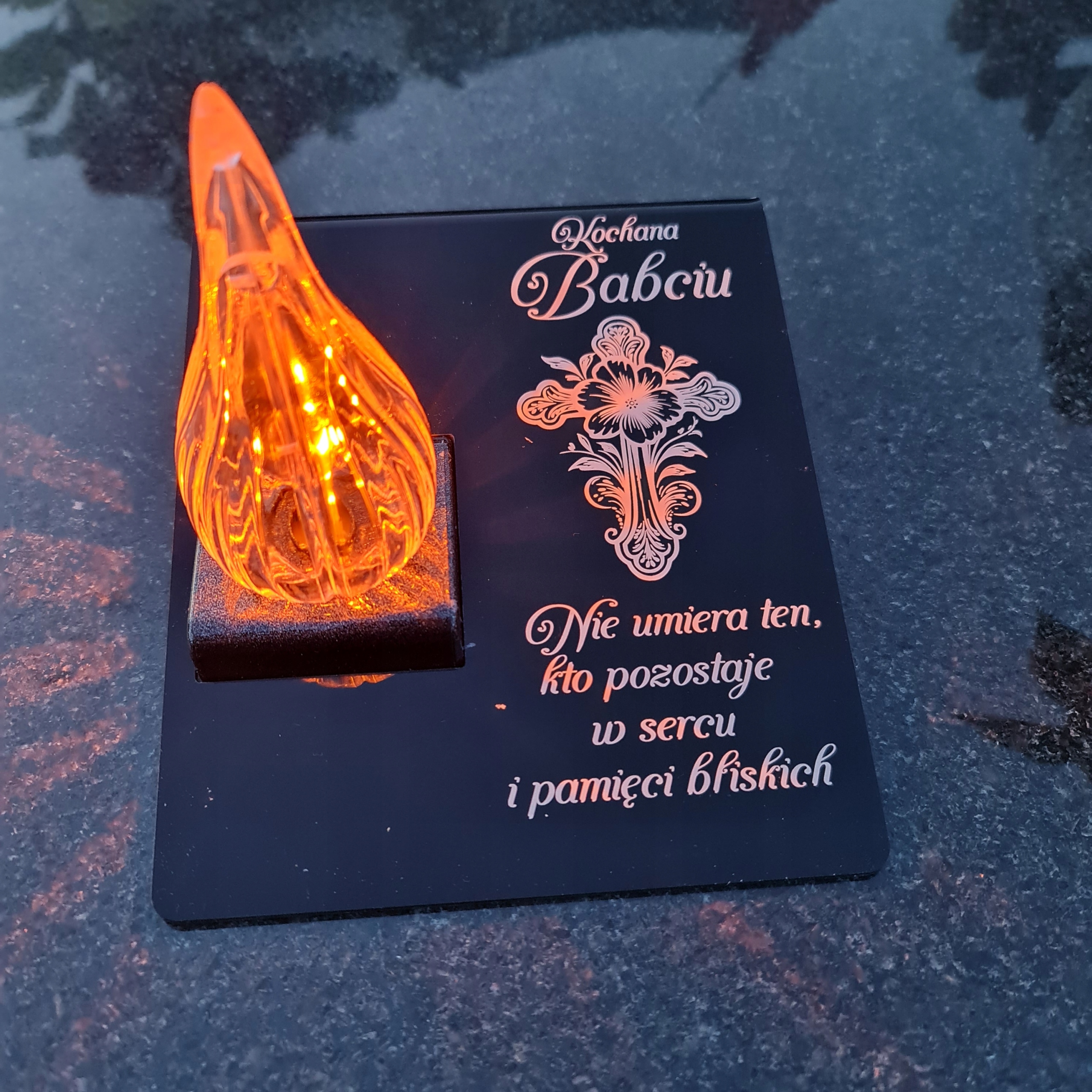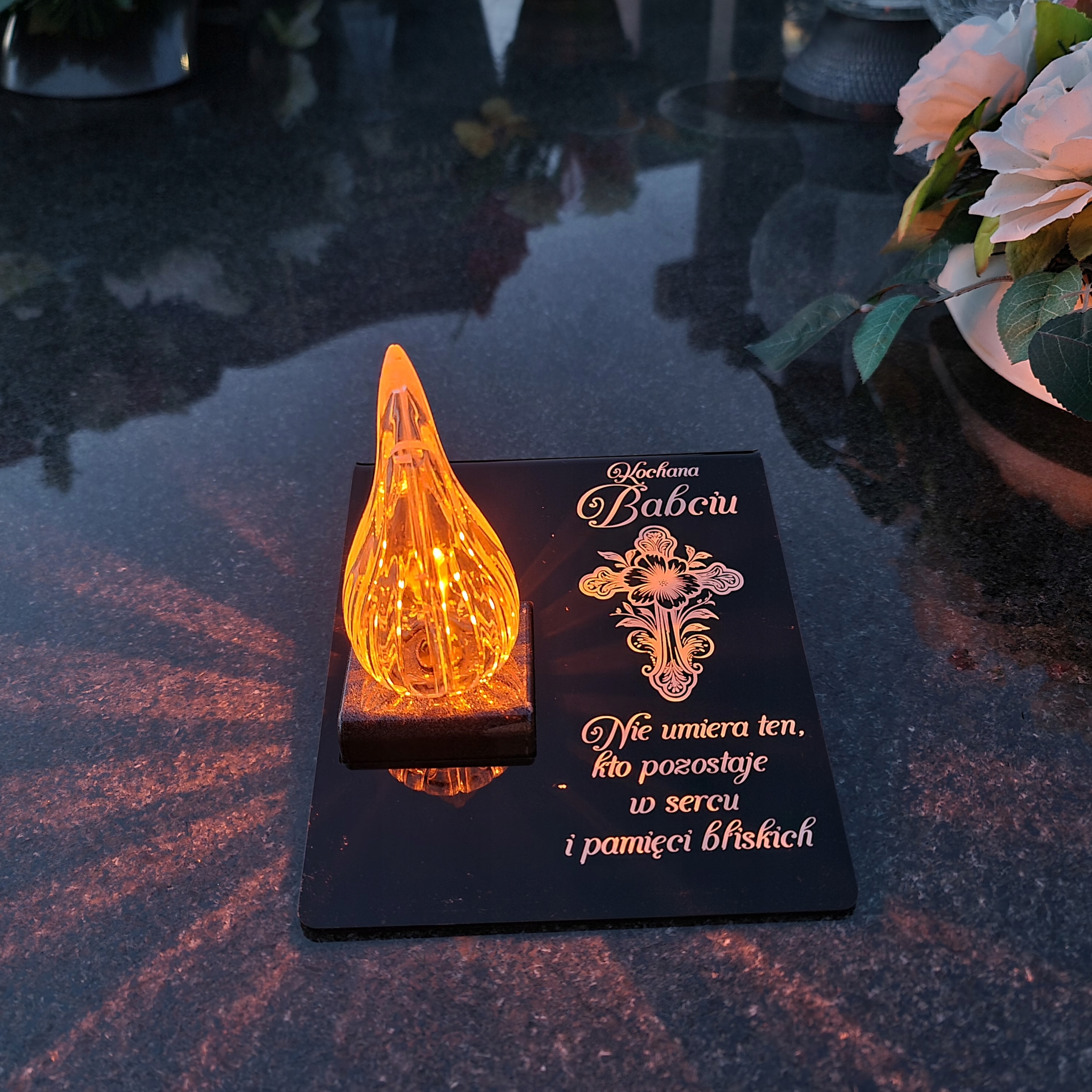 Вічна свічка на могилі з гравірованою акриловою скляною підставкою