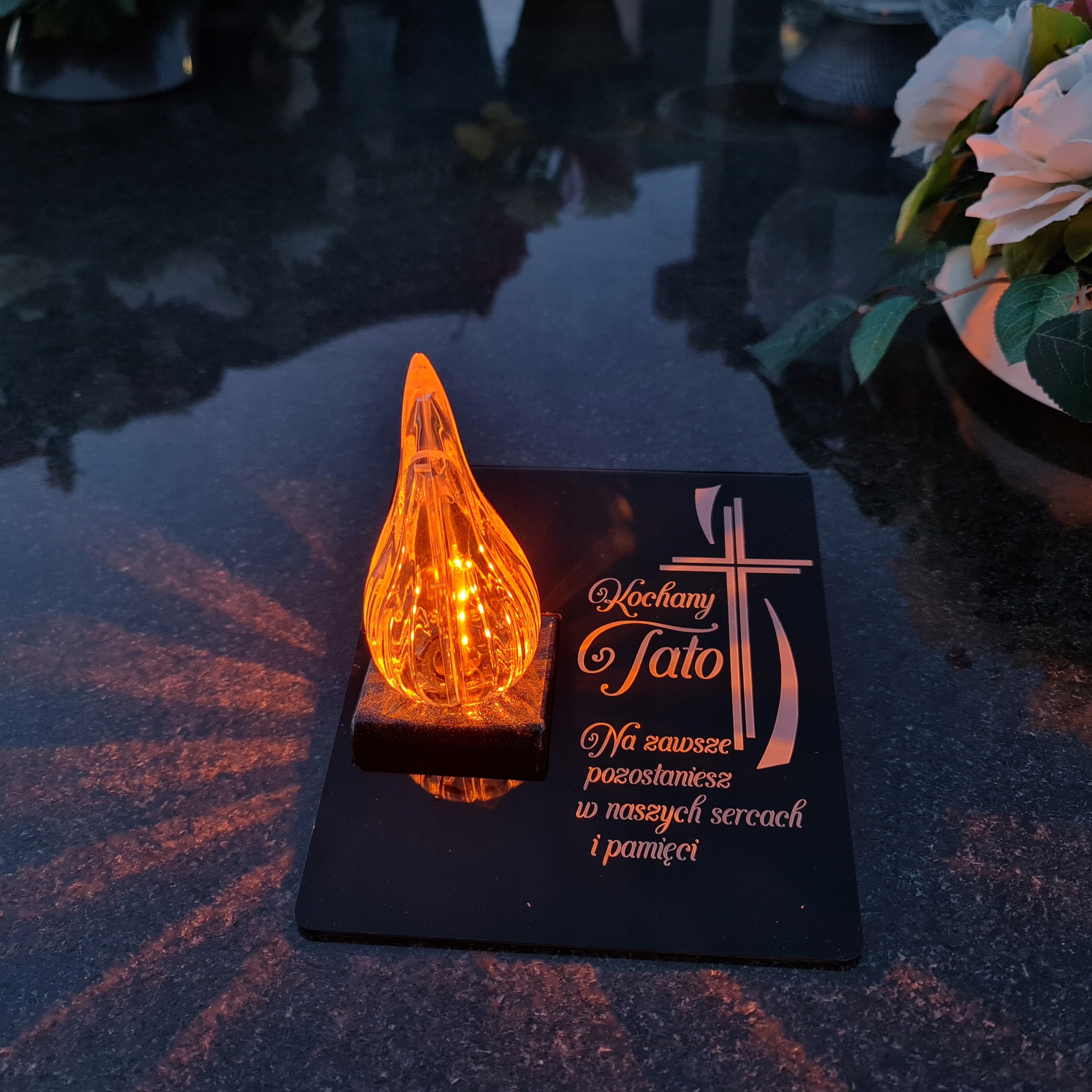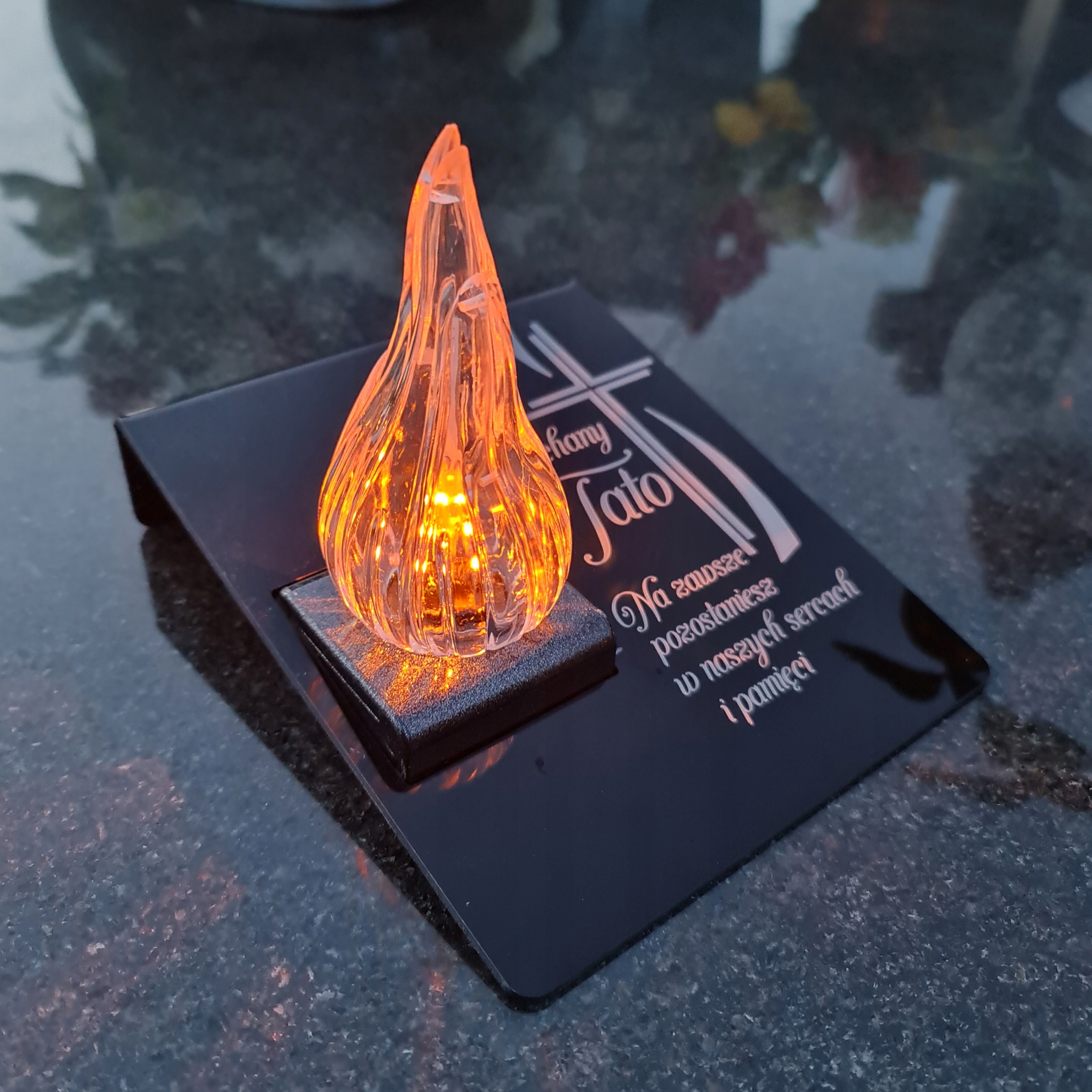 Вічна свічка на могилі з гравірованою акриловою скляною підставкою