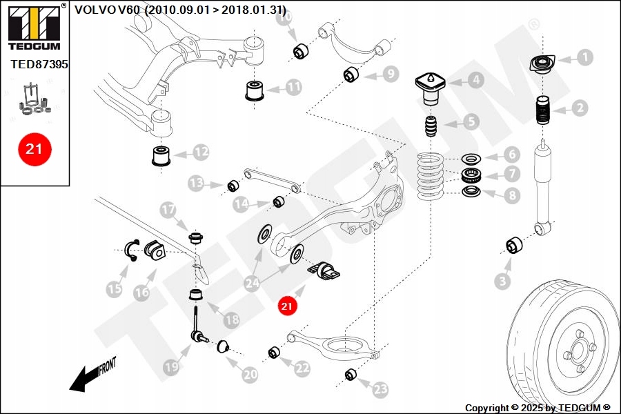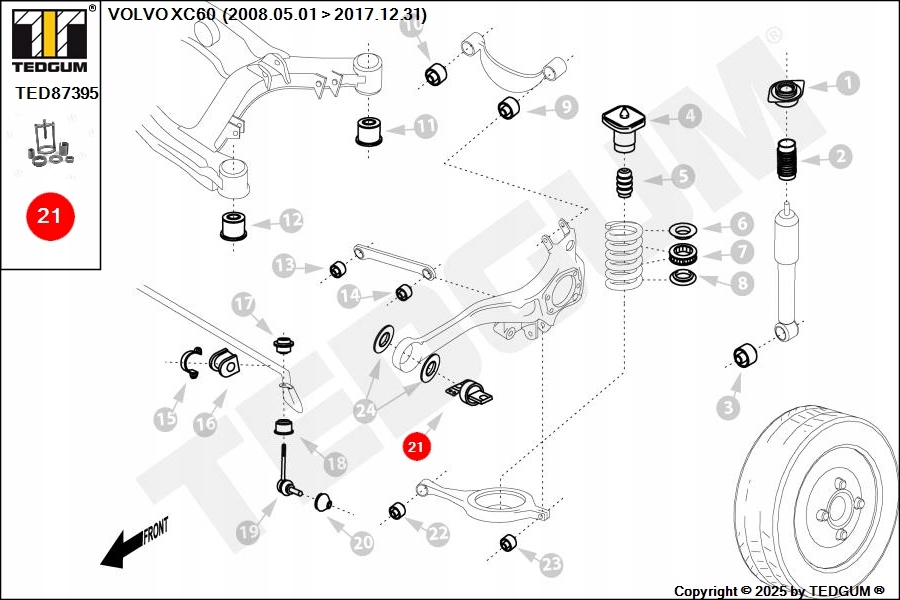 Компанія TEDGUM® є одним з провідних виробників опор двигуна, втулок поперечних важіль, гум стабілізаторів, опор карданів і зчеплень, бамперів амортизаторів та інших гумових і метало-гумових виробів на автомобільному ринку. Запчастини заводів Tedgum призначені для автомобілів більшості марок. У нашій пропозиції також є поліуретанові елементи, які є чудовою альтернативою для бездоріжжя та автоспорту.