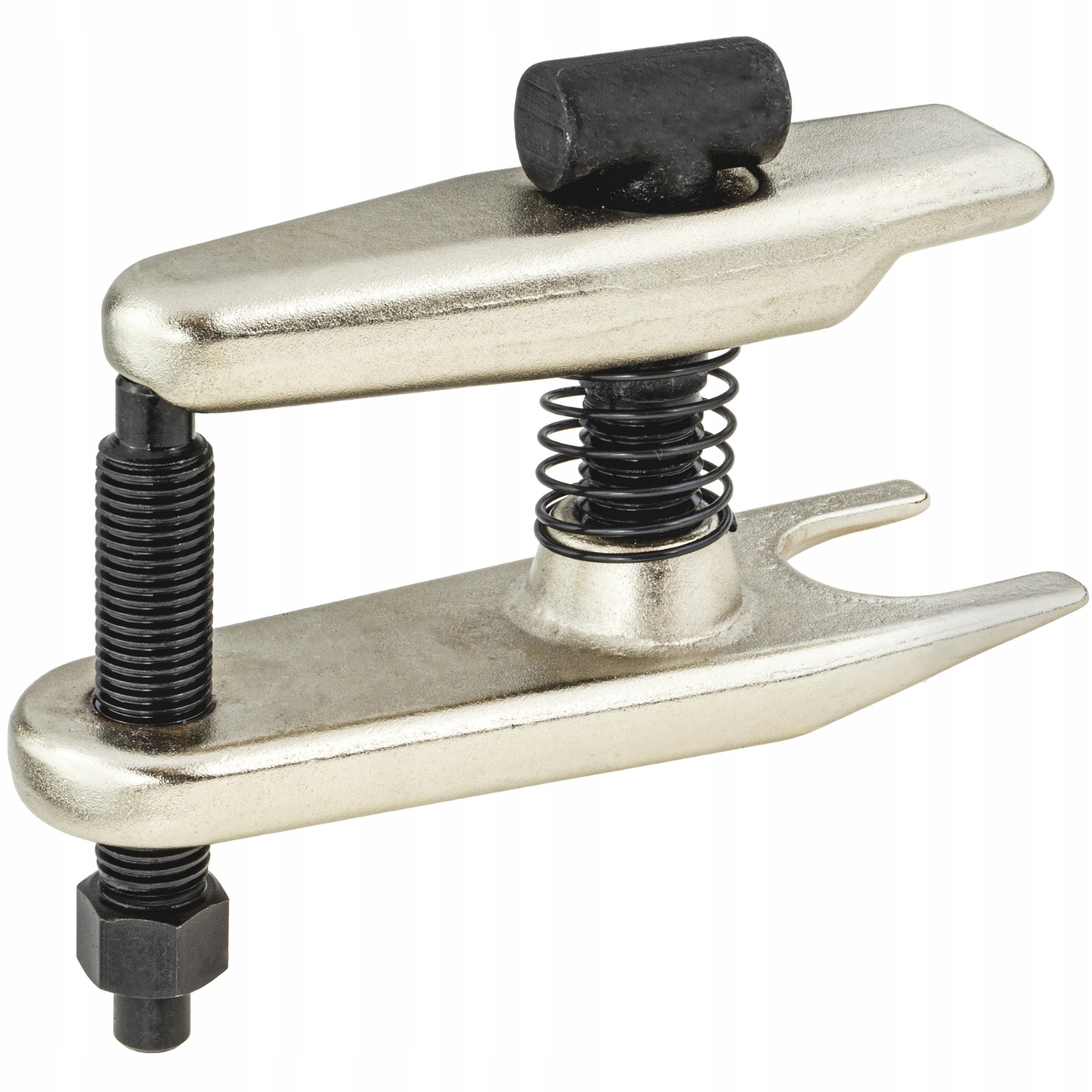 Характеристики: Великий знімач призначений для демонтажу наконечників рульових тяг і кульових цапф в легкових автомобілях і мікроавтобусах. Виготовлений з міцної сталі. Призначений для штифтів діаметром до 32 мм. Легке регулювання в діапазоні 36-75 мм за допомогою натискного гвинта. Пристосований для роботи з гайковим ключем на 19 мм