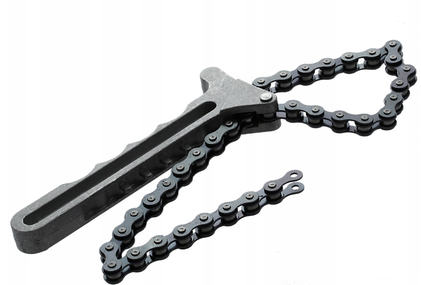 Ключ для ланцюга масляного фільтра це інструмент, який дозволяє швидко та легко відкрутити фільтр без зайвих зусиль. Ланцюговий ключ готовий до використання прямо з упаковки. Його ергономічна форма робить його зручним і простим у використанні. Просто відрегулюйте ширину ланки відповідно до розміру фільтра, міцно затягніть ручку регулювання та відкрутіть фільтр.