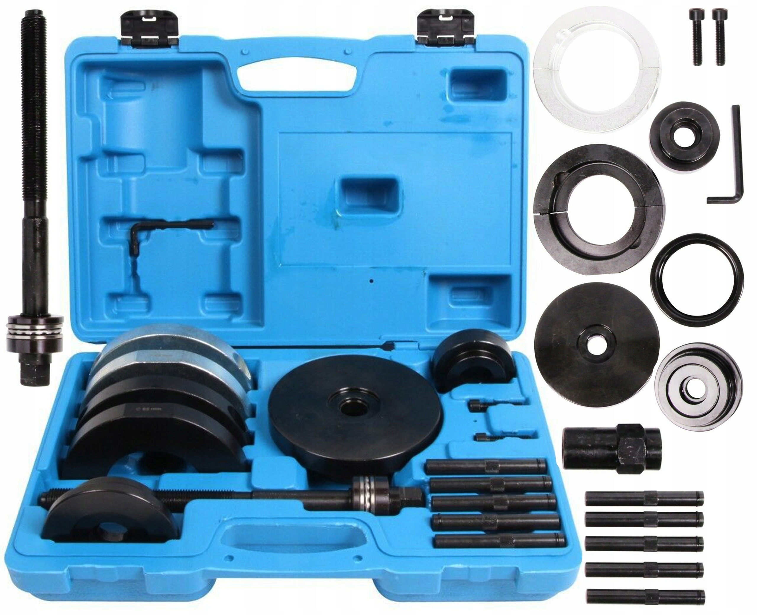 Використання цього набору дозволяє демонтувати підшипники - маточини під відповідним кутом, що дуже важливо для запобігання пошкодженню до корпусу та інших елементів.