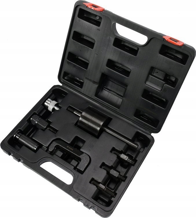 Професійний набір для швидкого демонтажу заблокованих форсунок паливної системи Common Rail з головки двигуна автомобілів Mercedes CDI. Підходить до форсунок таких виробників, як: Bosch, Denso, Delphi та Siemens b> . У набір входить 8 елементів: інерційний молоток, шарнір для роботи у важкодоступних місцях і перехідники.