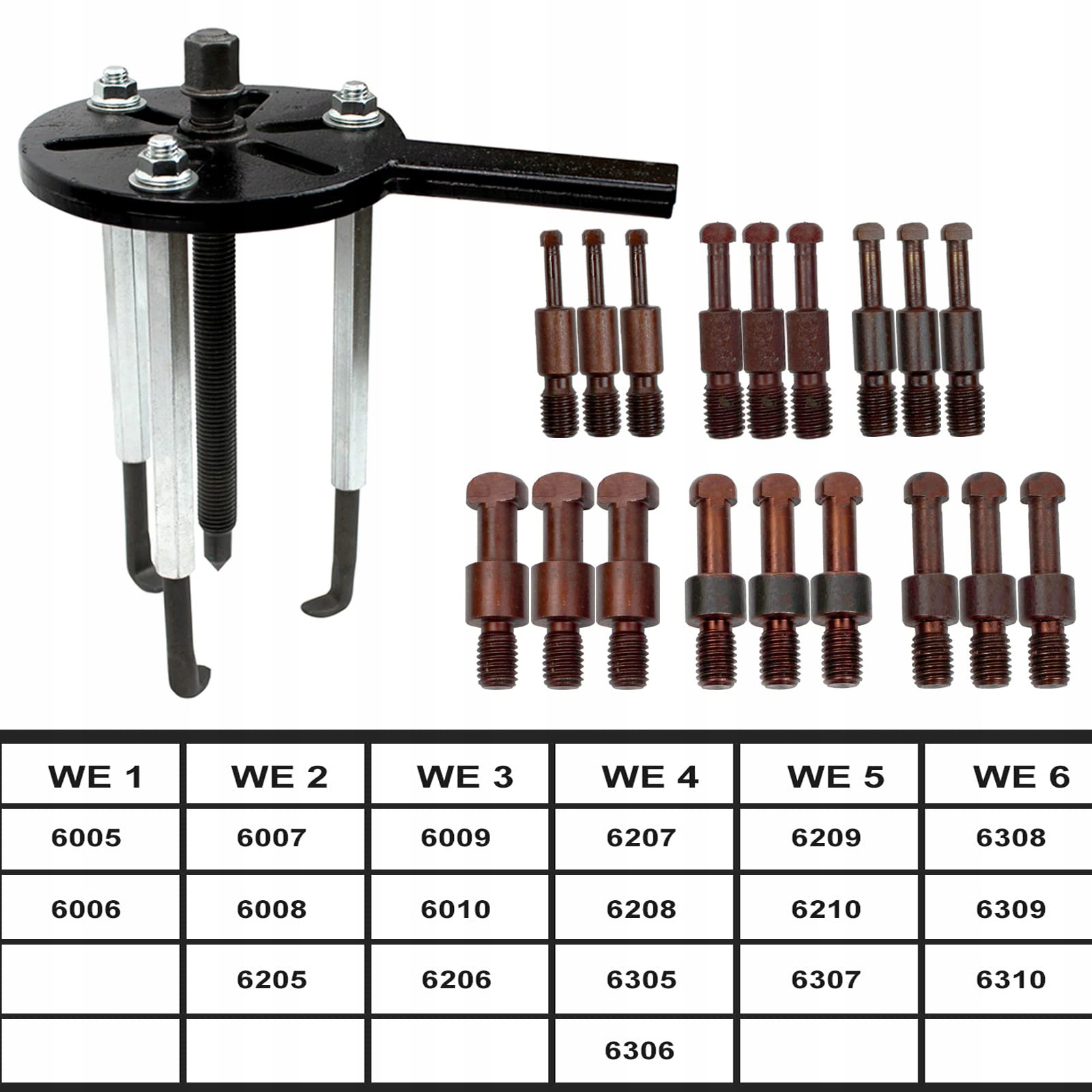 ✅Широко використання: Підходить для підшипників 6005/6006/6007/6008/6009/6010/6205/6206/6207/6208/6209/6210/6305/6306/6307/6308/6309/6310. Додано три нових гаки, що робить розбирання зручнішим і може бути застосовано до більшої кількості підшипників із різними характеристиками.