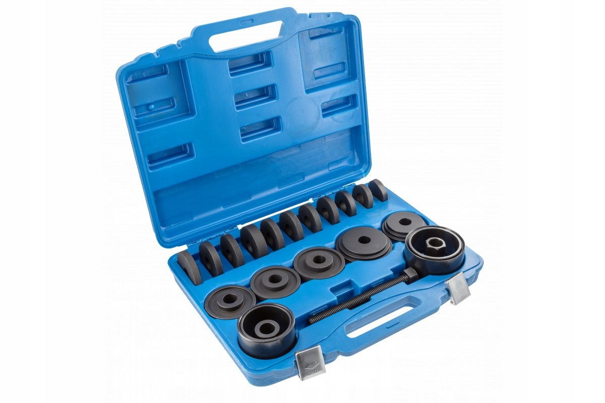 Набір призначений для зняття та встановлення підшипників маточини, шестерень, шківів, валів та інших запресованих деталей, які використовуються в механіці. Завдяки своїй конструкції окремі елементи запобігають пошкодженню втулки під час роботи. Набір, який використовується в професійних майстернях і автосервісах. Додатковою перевагою є можливість використання на гідравлічному або механічному пресі при демонтажі підшипників, втулок та інших деталей, що обертаються.