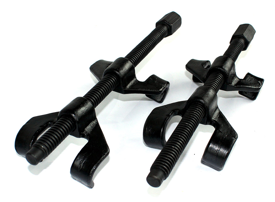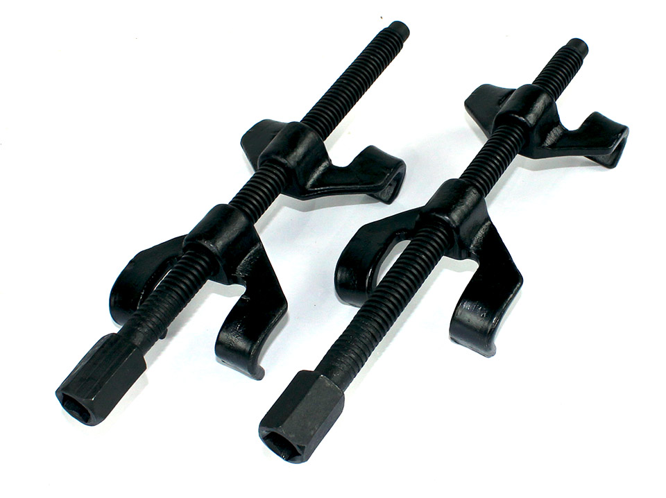Пружинні компресори необхідні для професійного обслуговування шасі. Адаптований до всіх типів пружин у стійках McPherson і незалежних пружин. Знімач працює з тріскачкою 1/2 дюйма. Вони мають тонку різьбу, що полегшує роботу під навантаженням пружини. Робота безпечна завдяки спеціально профільованим ручкам із двома плечами.
