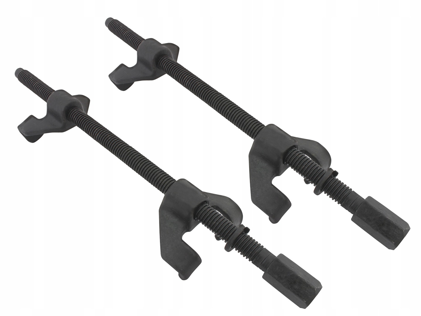 Набір компресорів автомобільних пружин, надзвичайно корисний при заміні амортизаторів і пружин в автомобілі. Пружинні компресори необхідні для професійного обслуговування шасі. Вони адаптовані до всіх типів амортизаційних пружин і незалежних пружин. Мають тонку трапецієподібну різьбу, що полегшує роботу під пружинним навантаженням.Робота з пристроєм абсолютно безпечна завдяки спеціально профільованим двоплечим рукояткам.
