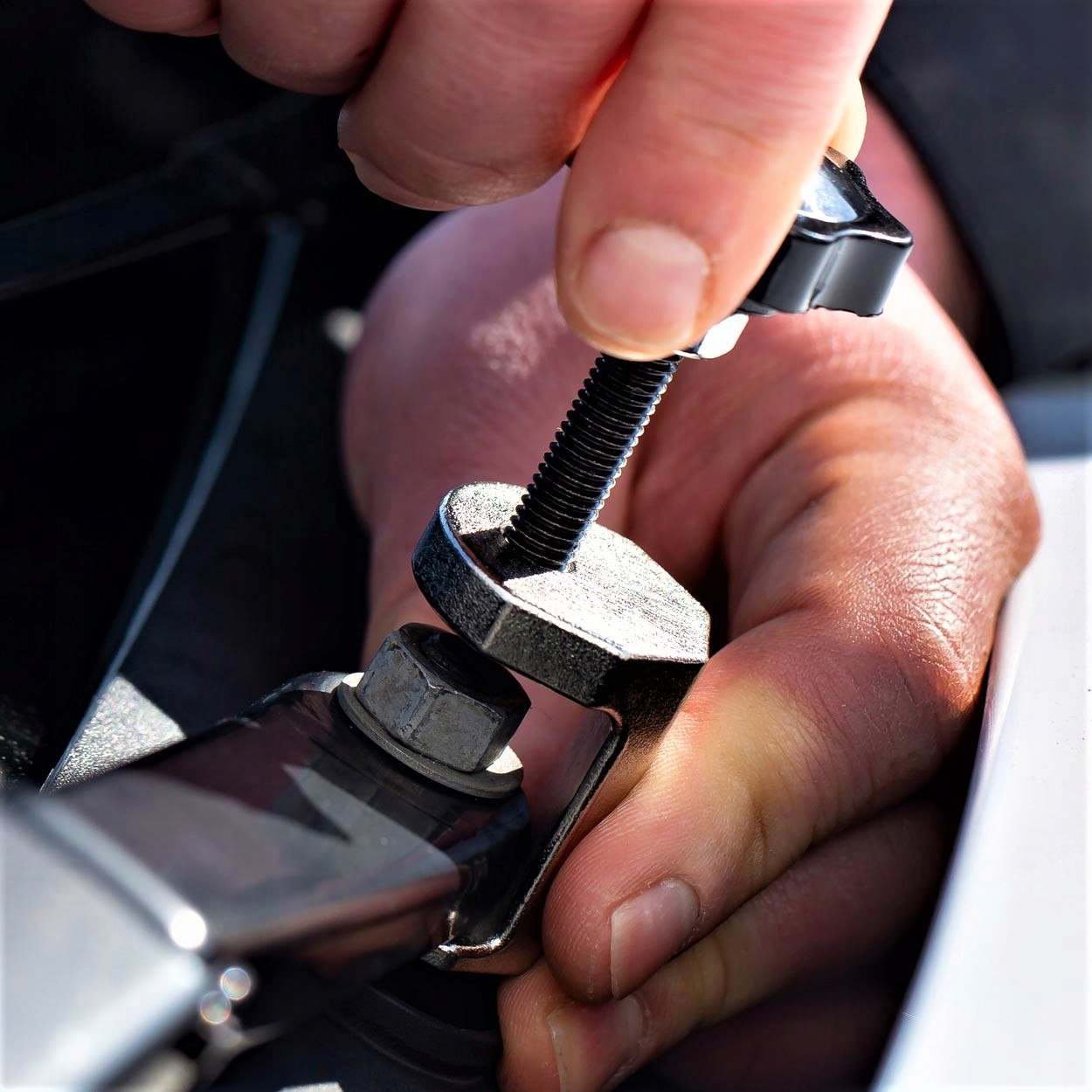 - Спеціалізований універсальний знімач важілів склоочисників дозволяє демонтувати важелі склоочисників, які застрягли в гнізді, мінімізуючи ризик пошкодження лобового скла та важіль . Виріб виготовлено з міцної хромомолібденової сталі.