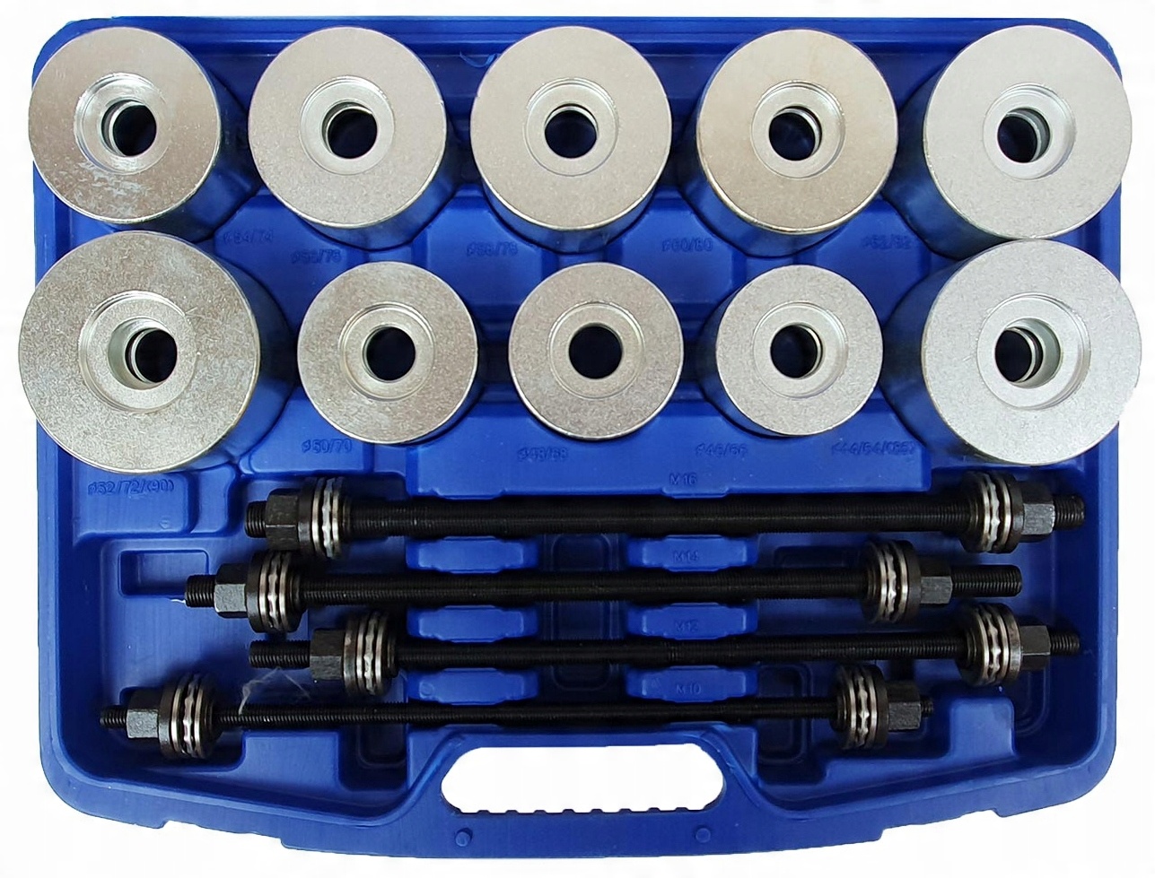 Набір також можна використовувати як адаптери для гідравлічних пресів під час видавлювання підшипників, втулок і штифтів.