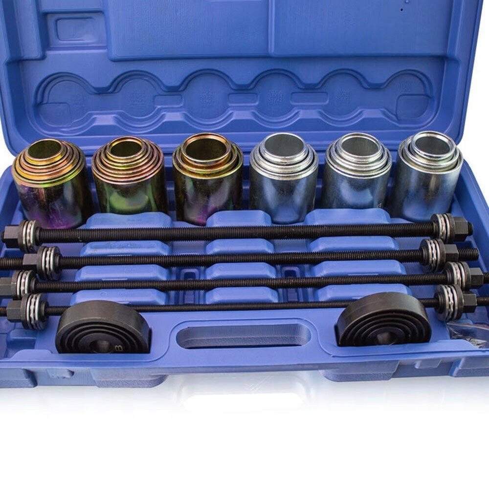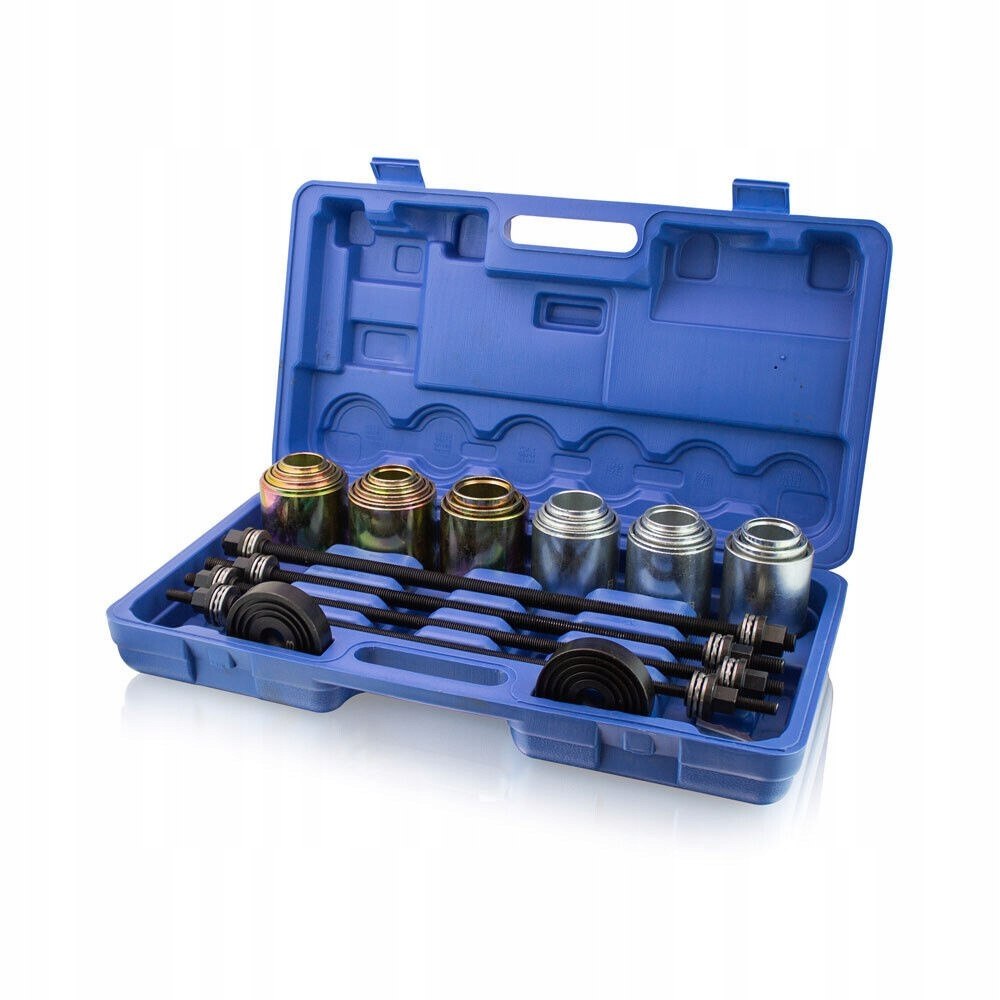 За допомогою набору знімачів можна встановлювати або знімати втулки, підшипники та сальники. Його можна використовувати універсально та ідеально підходить для монтажу/демонтажу підшипників (безшумні підшипники, гідравлічні підшипники, втулки підшипників, шарикопідшипники, сальники та гумові підшипники).