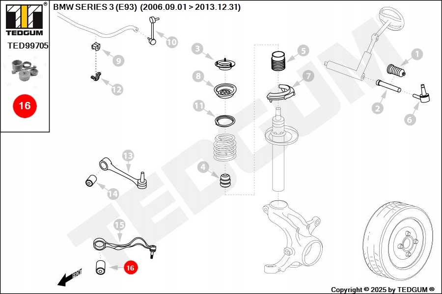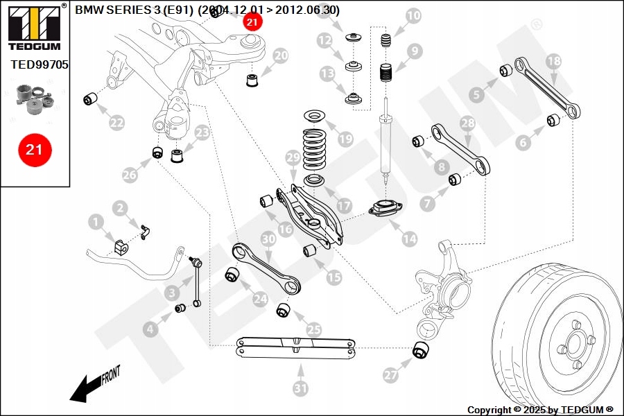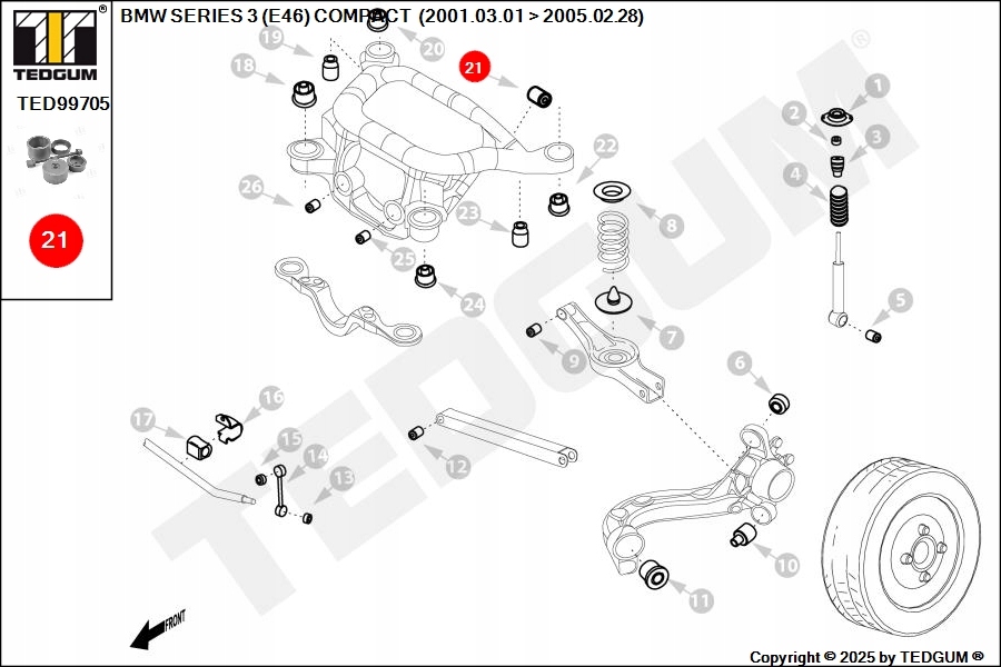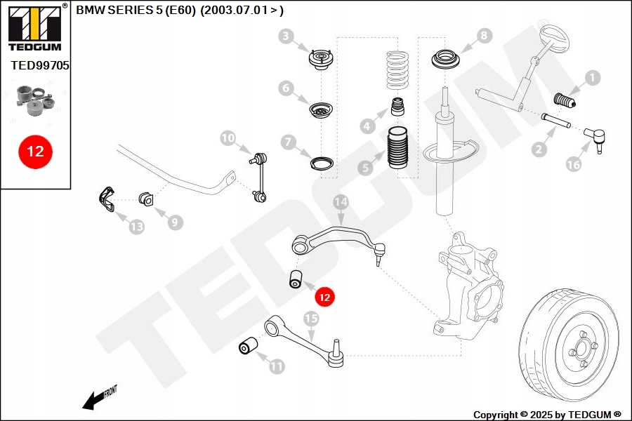 Компанія TEDGUM® є одним з провідних виробників опор двигуна, втулок поперечних важіль, гум стабілізаторів, карданних опор і муфт, бамперів амортизаторів та інших гумових і металорезинових виробів на автомобільному ринку. Запчастини заводів Tedgum призначені для автомобілів більшості марок. У нашій пропозиції також є поліуретанові елементи, які є чудовою альтернативою для бездоріжжя та автоспорту.