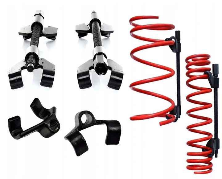 Пружинні компресори необхідні в професійному сервісі шасі. Адаптований до всіх типів пружин у стійках McPherson і незалежних пружин. Знімач працює з тріскачкою 1/2" і має дрібну різьбу, що полегшує роботу під навантаженням пружини. Робота безпечна завдяки спеціально профільованим двостороннім ручкам.