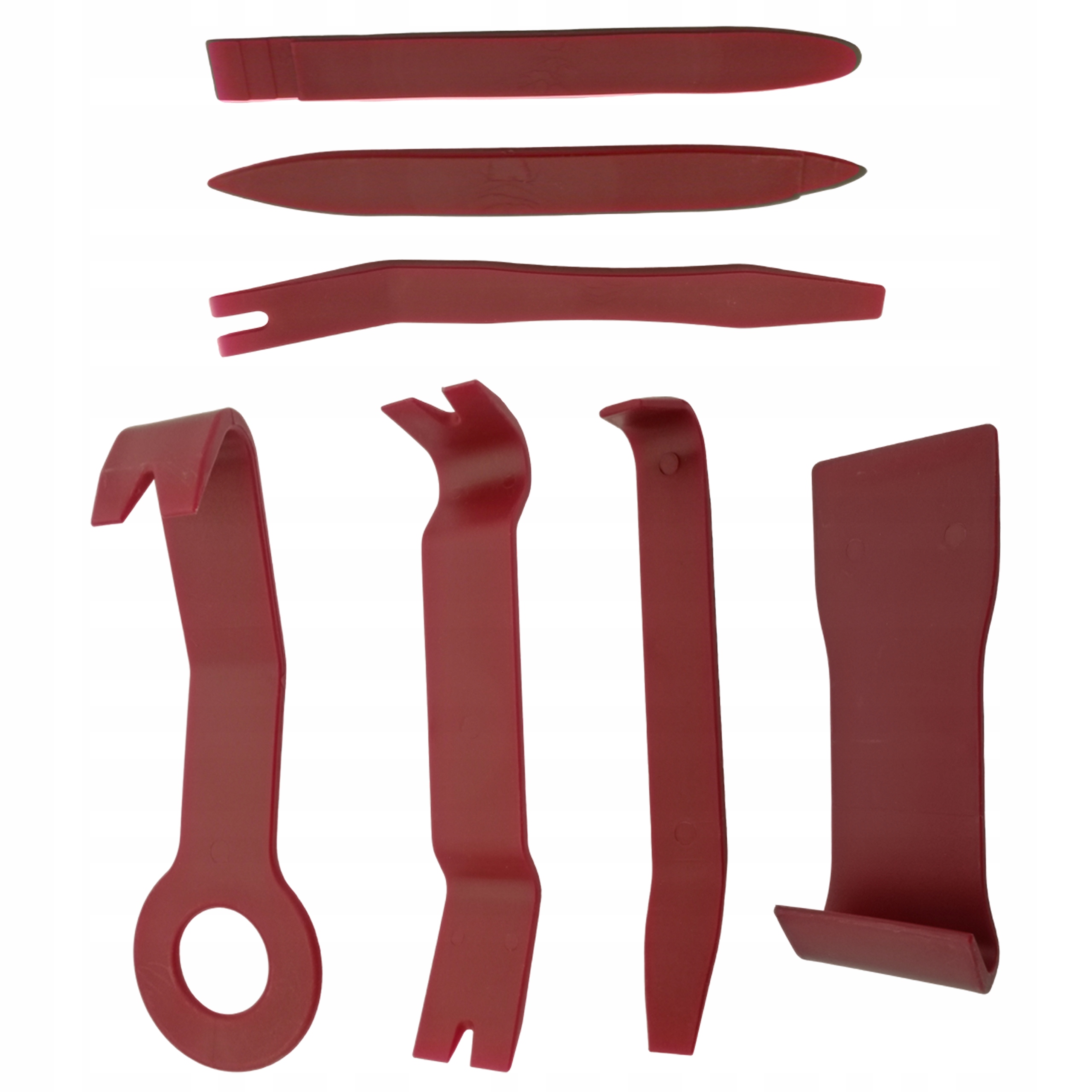 Набір із 7 знімачів різної довжини та форми для безпечного зняття оббивки, автомобільних молдингів, дверних накладок тощо. Особливо рекомендується для роботи в автомобілях, кузовних роботах, фарбуванні та ремонті автомобілів.