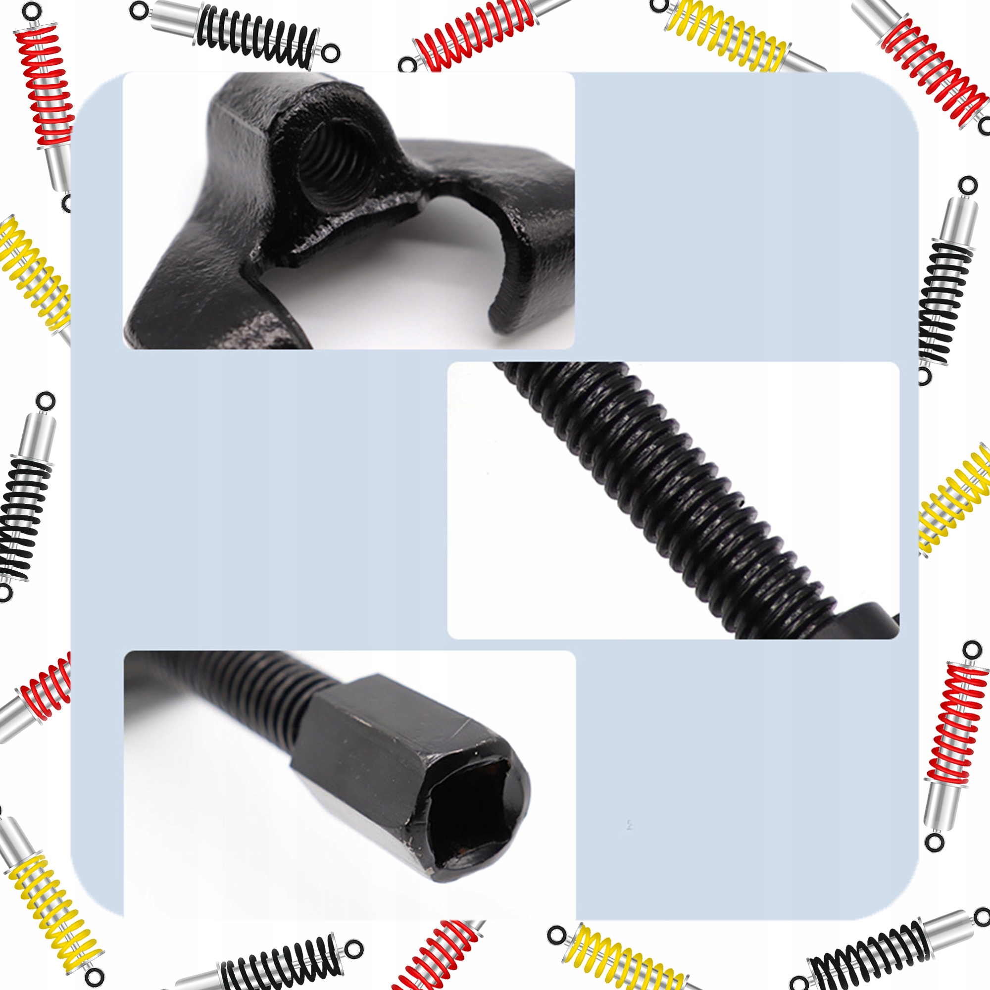 - Безпечне використання: інструмент розроблено для мінімізації ризику ковзання та пошкодження пружини, забезпечуючи безпечне використання.