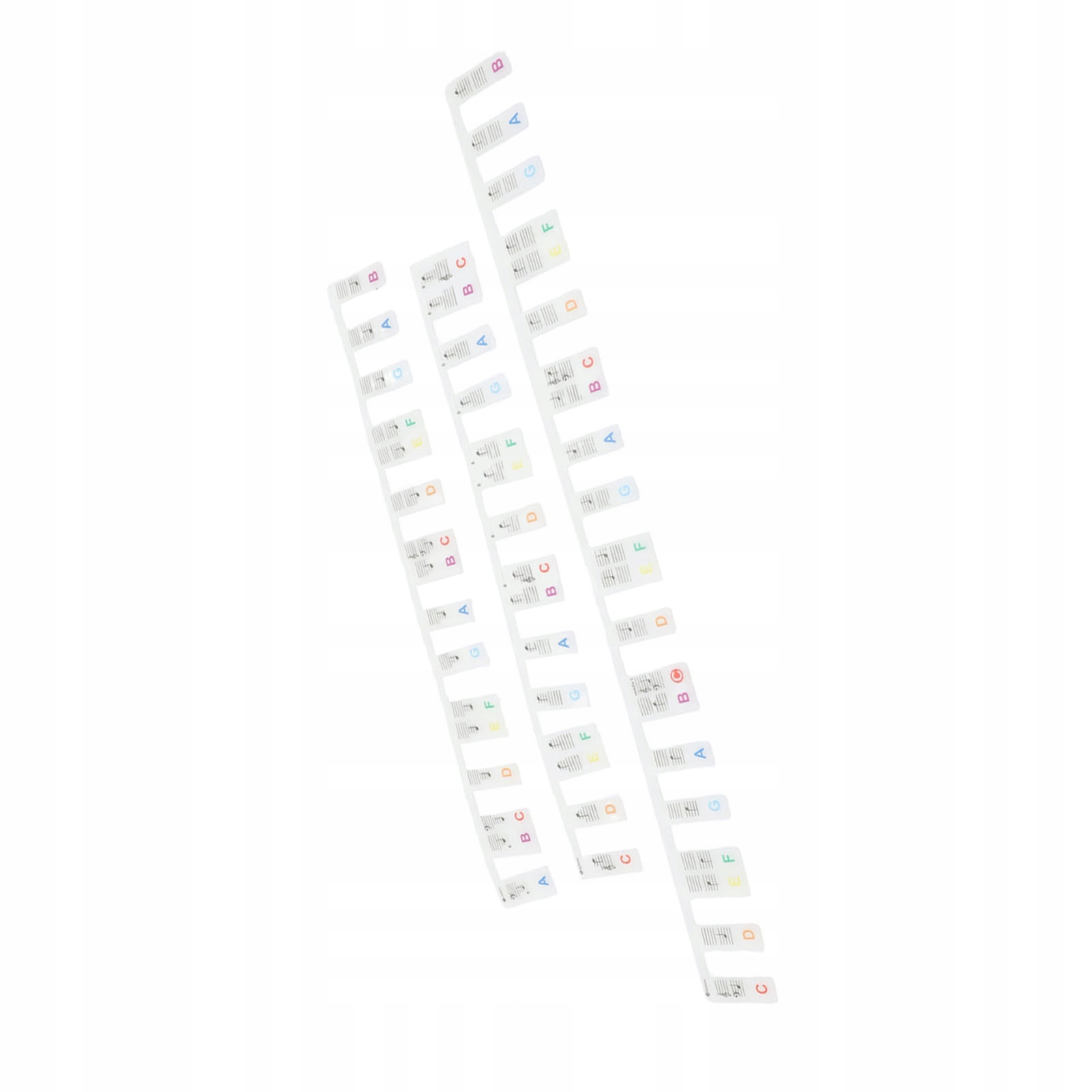 3. Чіткі примітки: Ці путівники на фортепіано допомагають початківцям визначити нотатки на клавіатурі. Кожен ключ чітко позначений для подвійного персоналу, що дозволяє студентам швидко знайти відповідні нотатки без необхідності вдосконалених знань про імена нот або середню позицію c.