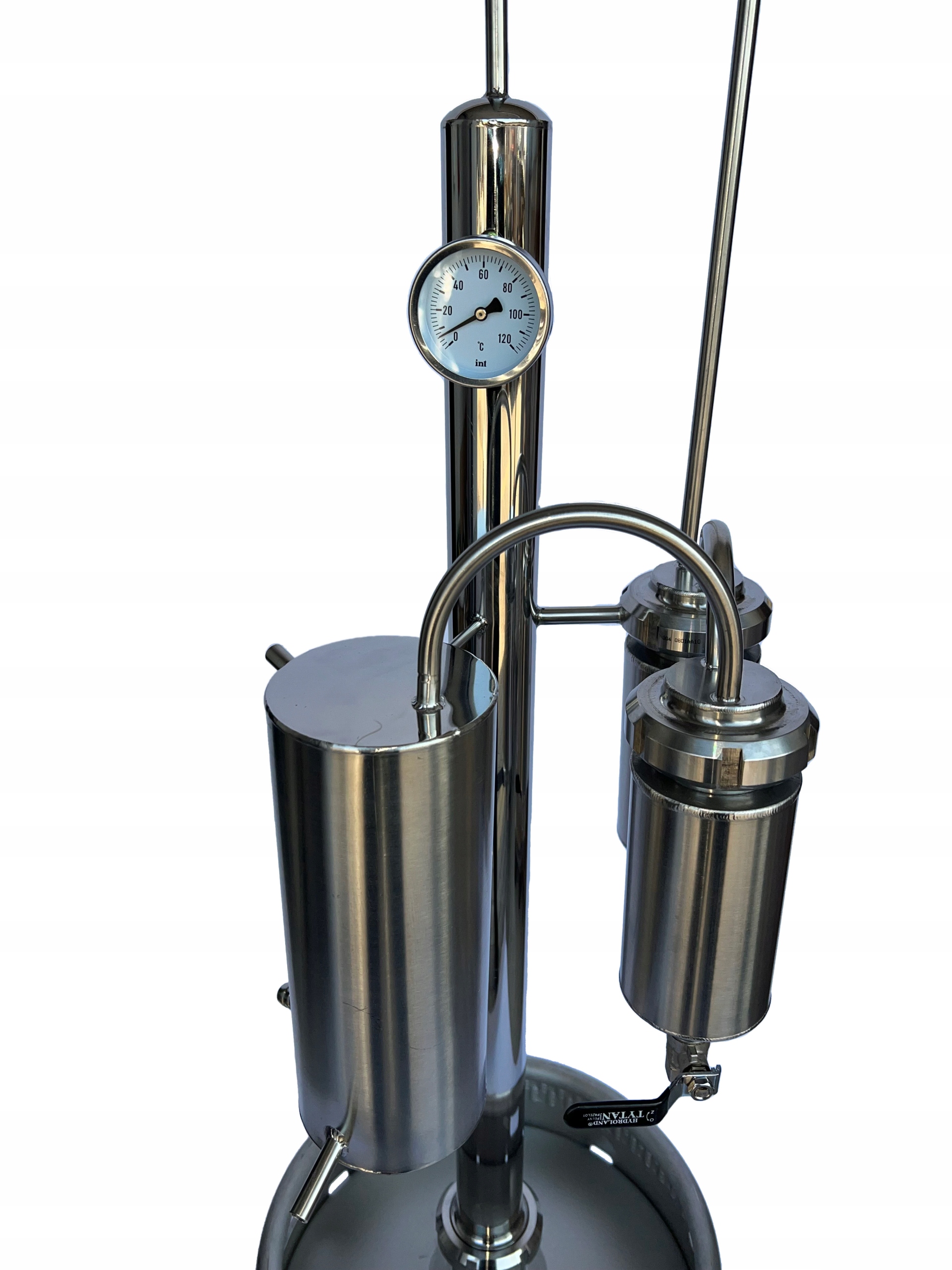 Покращена конструкція популярний горщиковий дистилятор. Завдяки центральному розташуванню радіатора та відстійників ви отримуєте кращу ергономіку роботи при збереженні тієї ж ефективності (зручніше відкручування/загвинчування, обладнання займає менше місця, у порівнянні зі стандартним комплектом стоїть стабільно, не викликаючи набору розмахувати.
