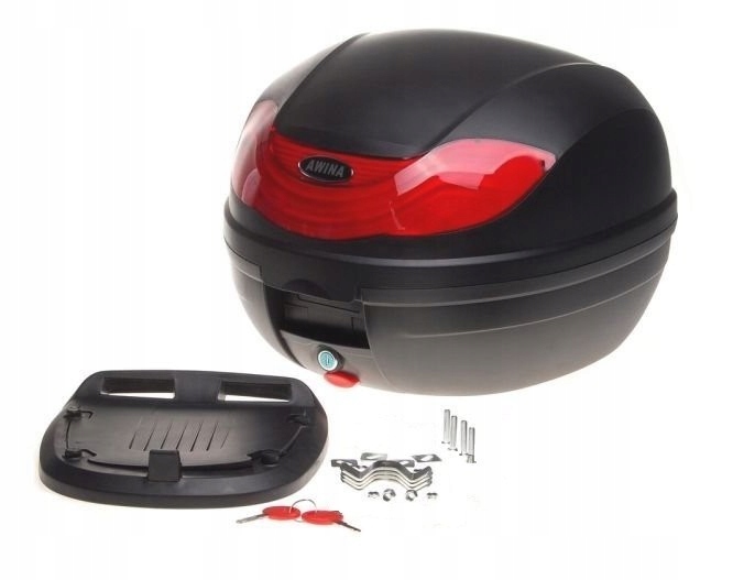 Багажник для мотоцикла 32 л - чорний з червоними відбивачами, закривається