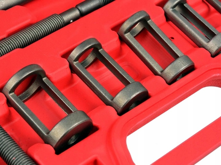 Опис інструменту: Пристрій зі змінними адаптерами для стиснення пружин клапанів. У комплект входить п'ять перехідників різного діаметру.