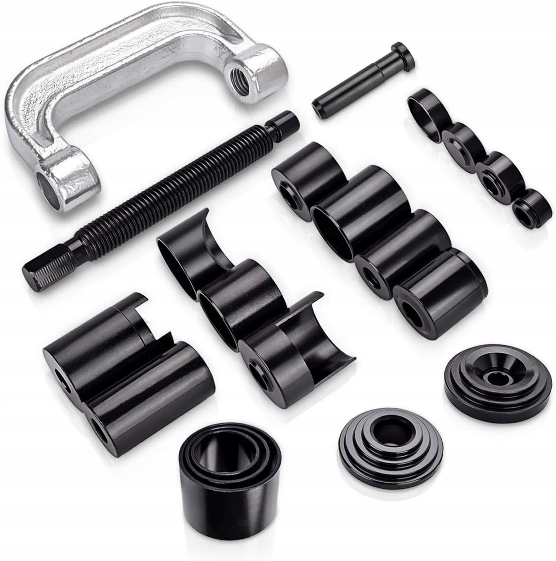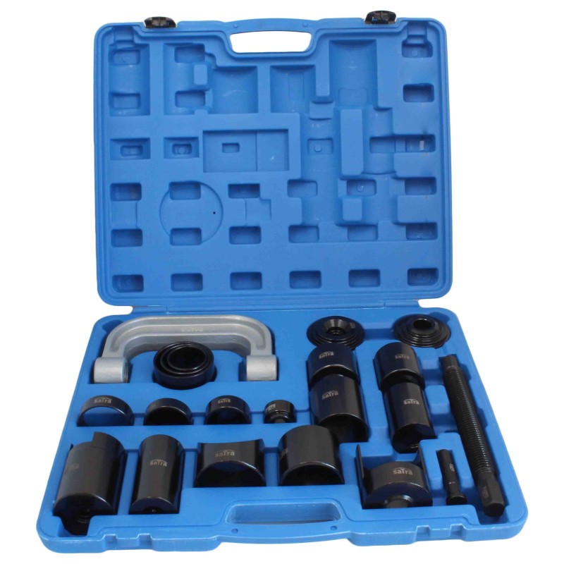 Опис продукту: Спеціалізований набір інструментів, призначений для розбирання та складання елементів системи підвіски, таких як: верхні/нижні кульові цапфи, карданні шарніри, анкерні пальці гальма або з’єднання, що вимагають відповідного знімача.