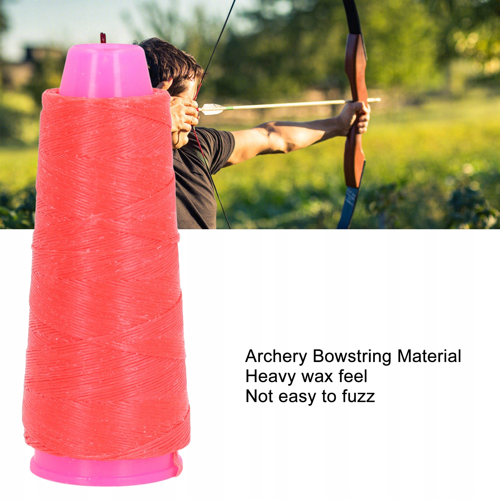1. СТІЙКИЙ ДО СТИРАННЯ МАТЕРІАЛ: виготовлено зі стійкого до стирання поліетиленового полімерного матеріалу, який гарантує, що тятива лука не розпадеться легко, і забезпечує довговічність протягом тривалого використання.