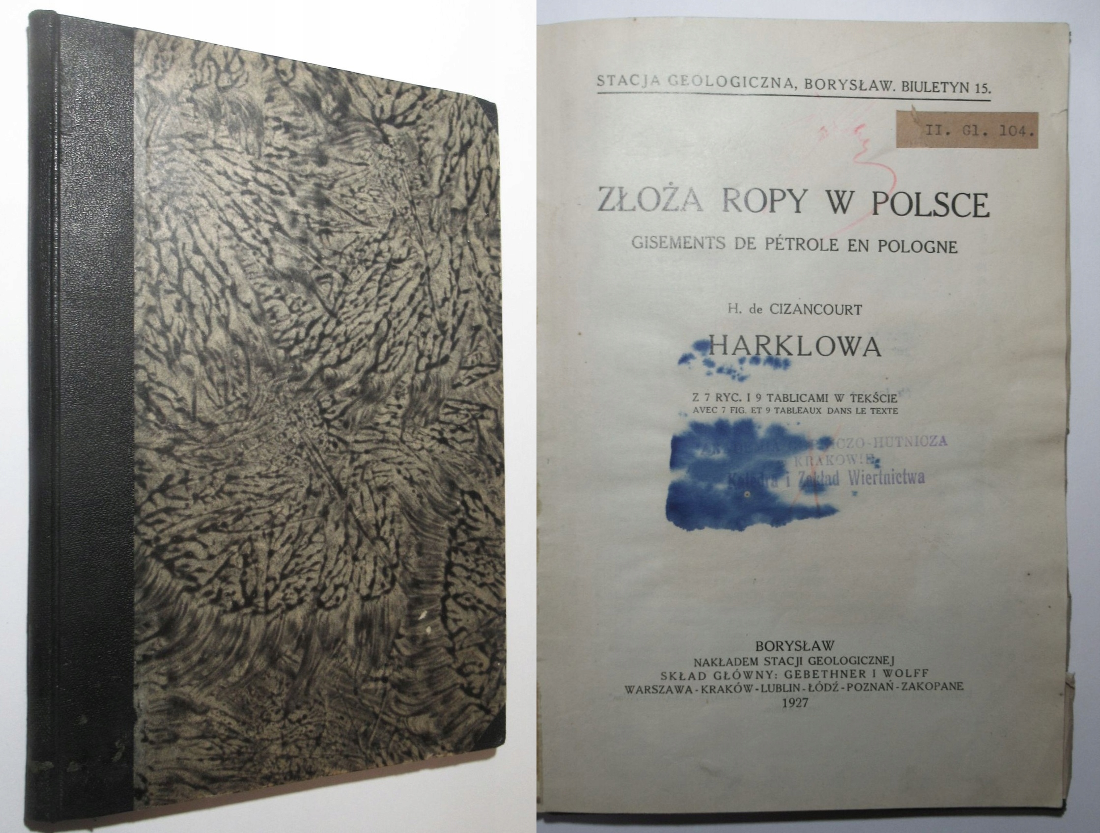 Złoża ropy w Polsce, Harklowa, Henry Cizancourt, 1927, TABLICE
